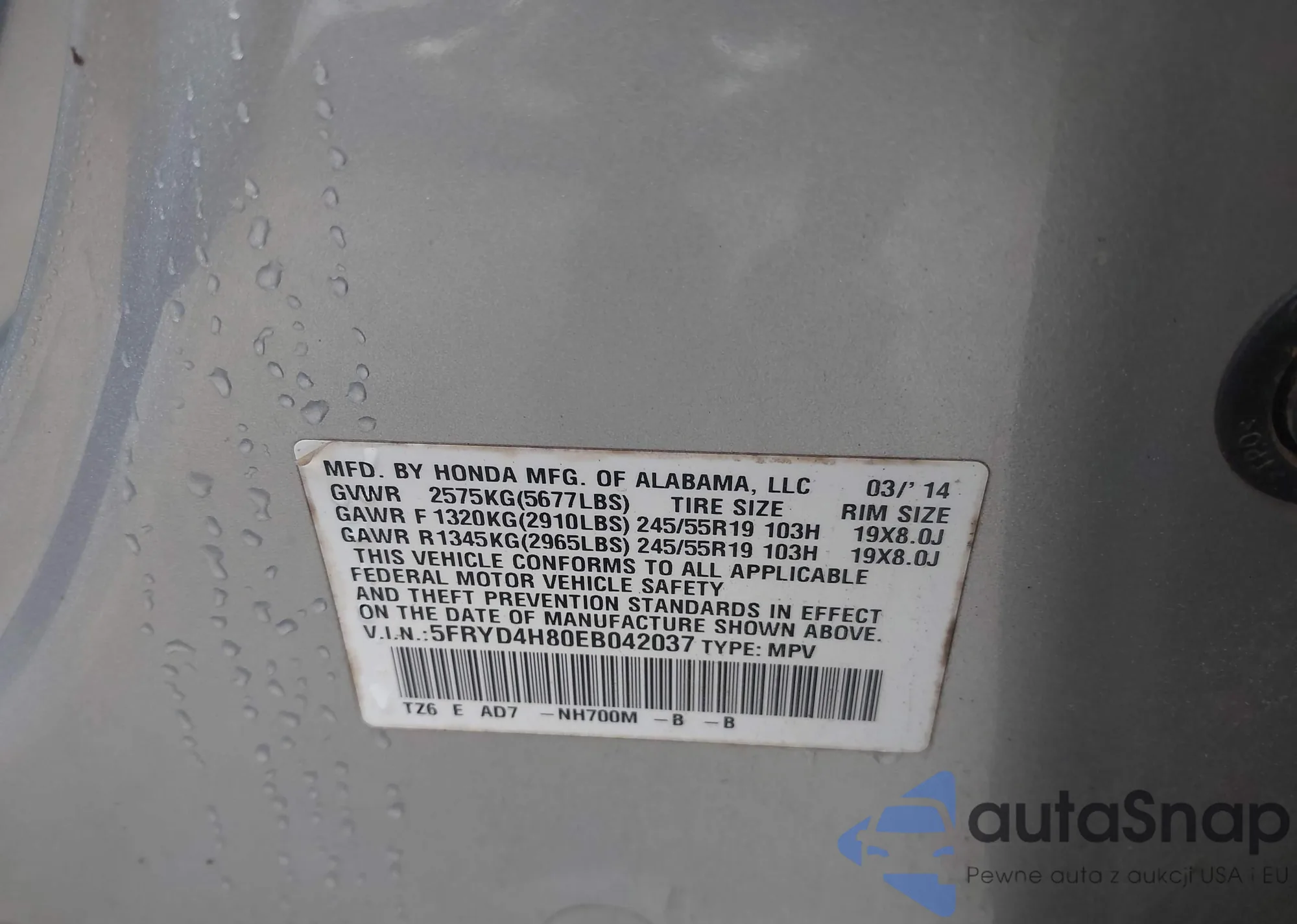 • VIN 5FRYD4H80EB042037