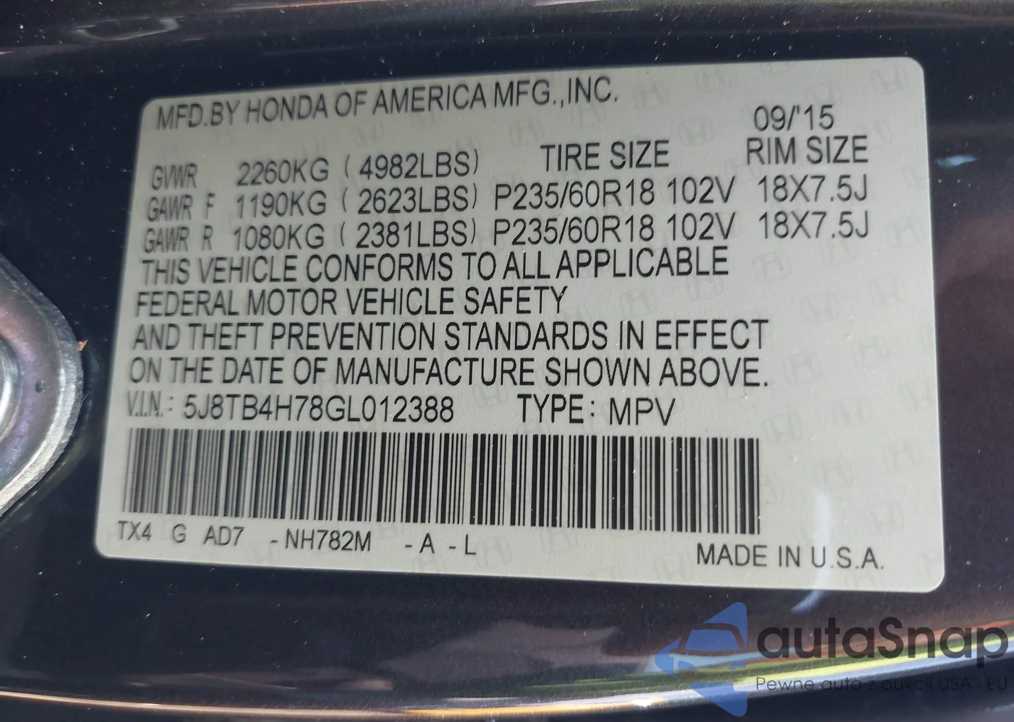 • VIN 5J8TB4H78GL012388
