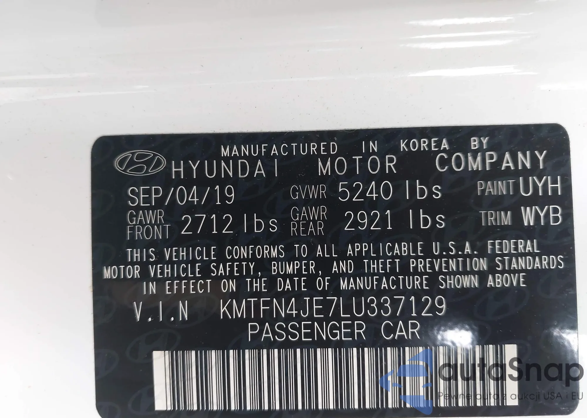 • VIN KMTFN4JE7LU337129
