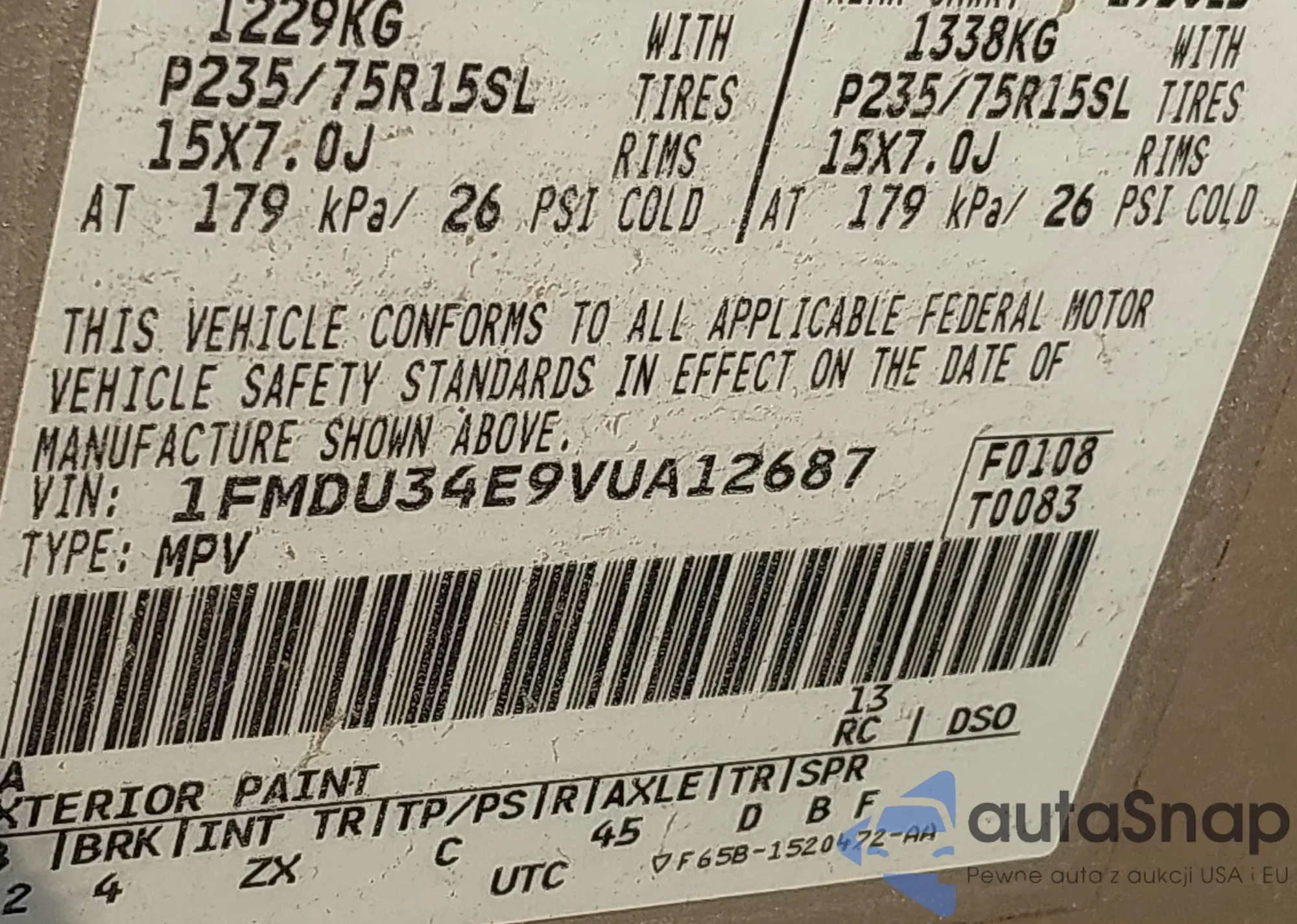 LOT: 41861637 VIN: 1FMDU34E9VUA12687