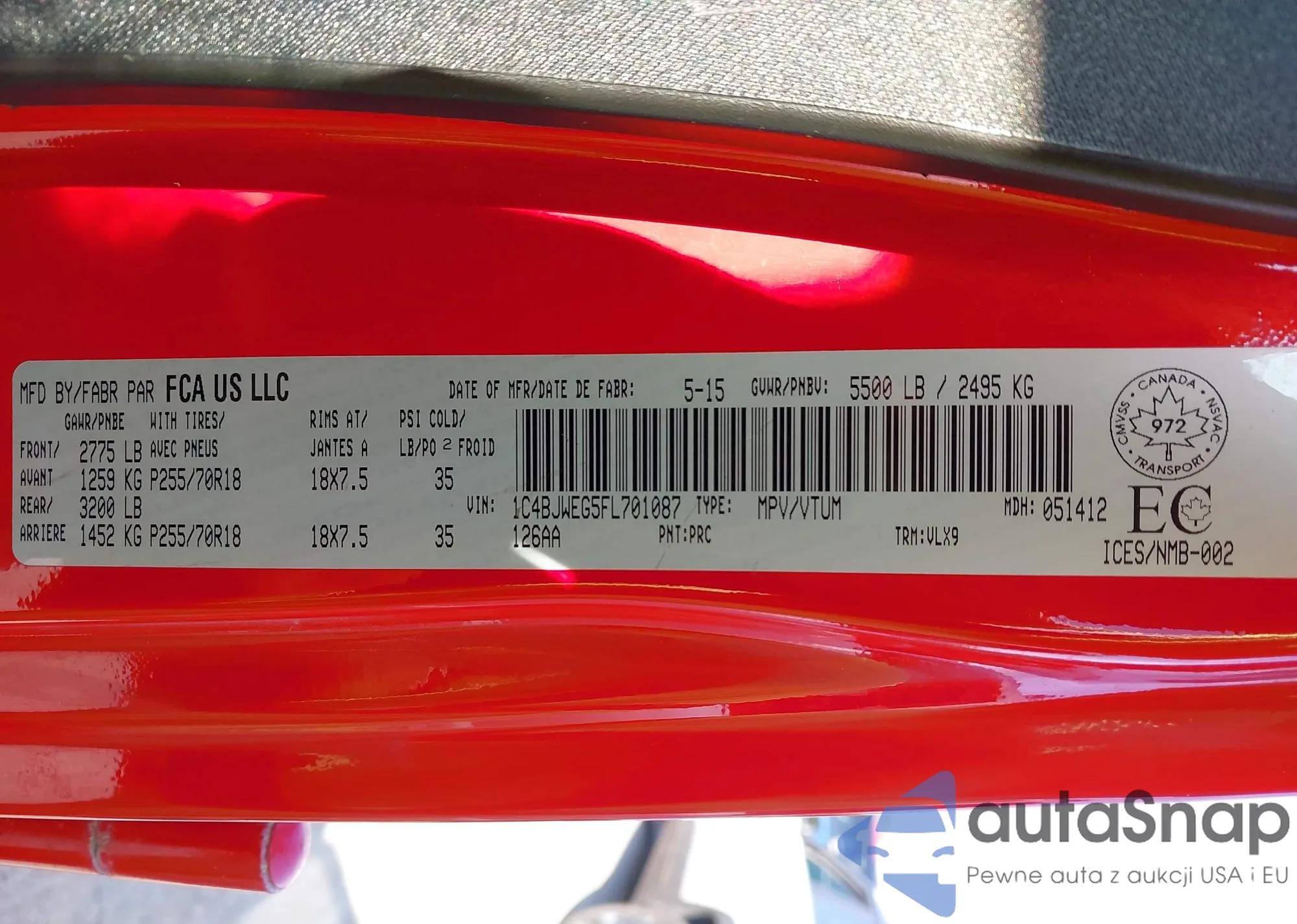 • VIN 1C4BJWEG5FL701087
