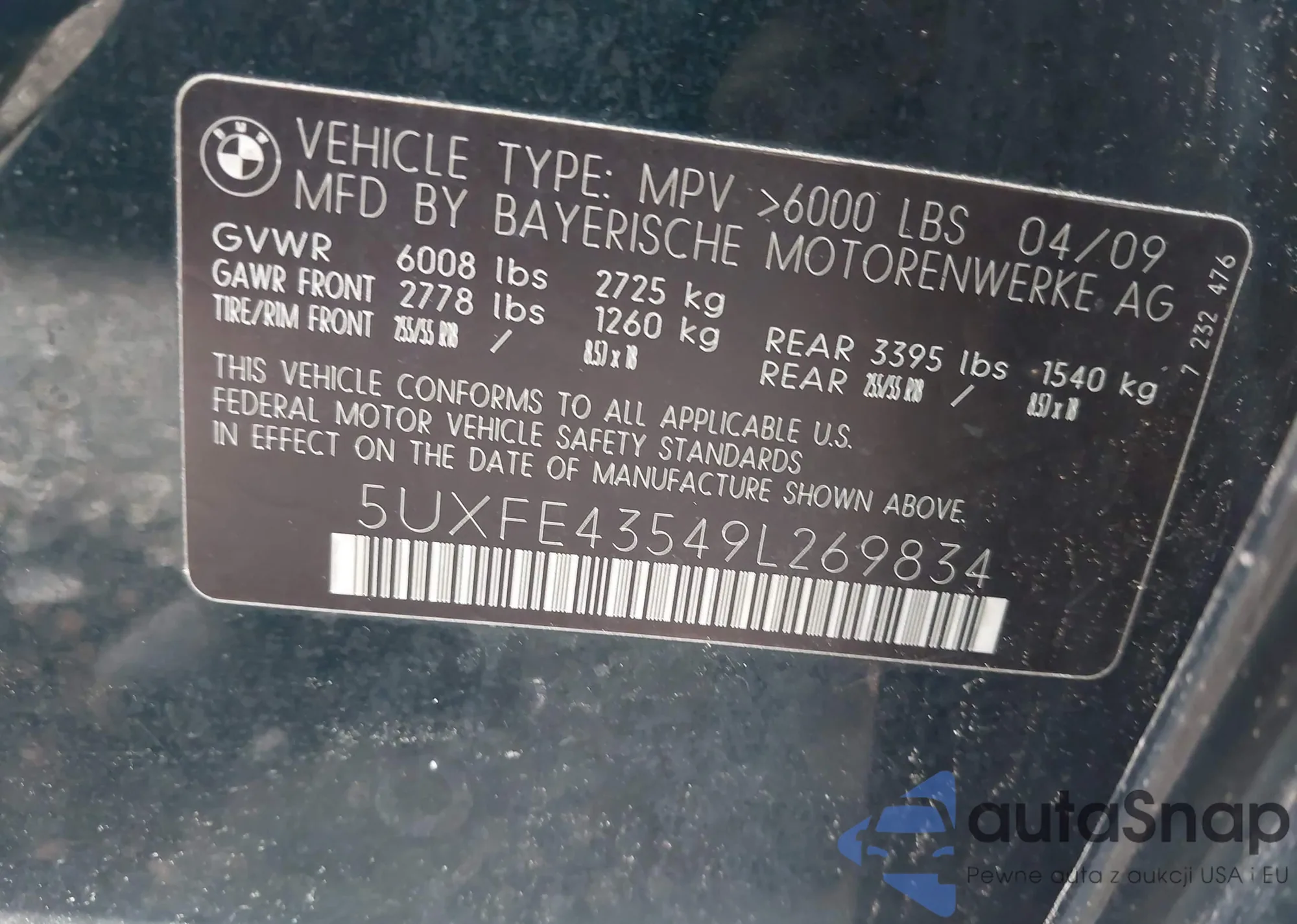 • VIN 5UXFE43549L269834