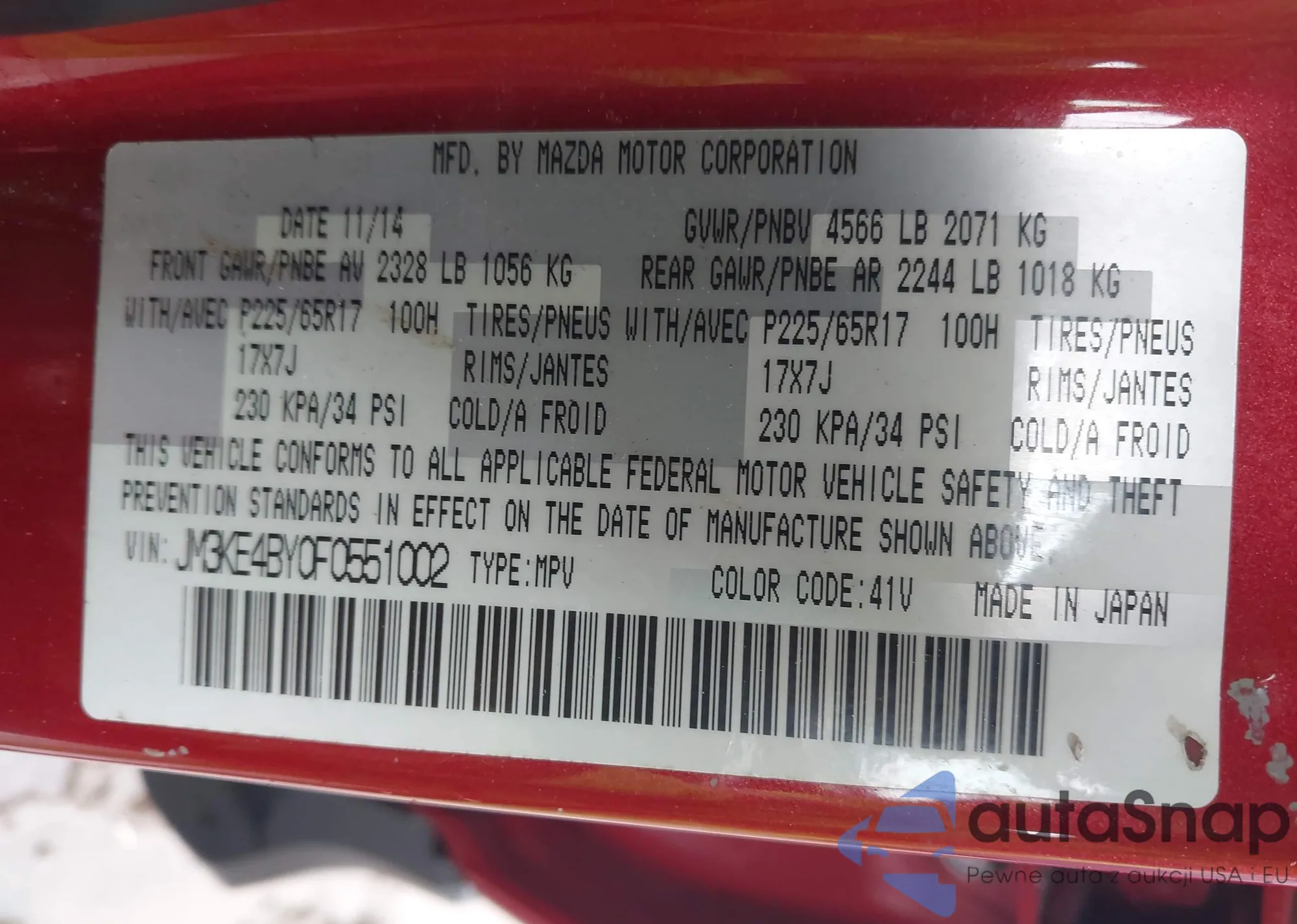 LOT: 42879982 VIN: JM3KE4BY0F0551002