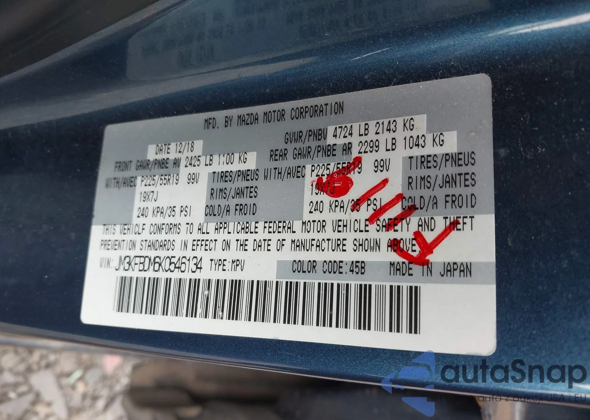 LOT: 42897273 VIN: JM3KFBDM6K0546134