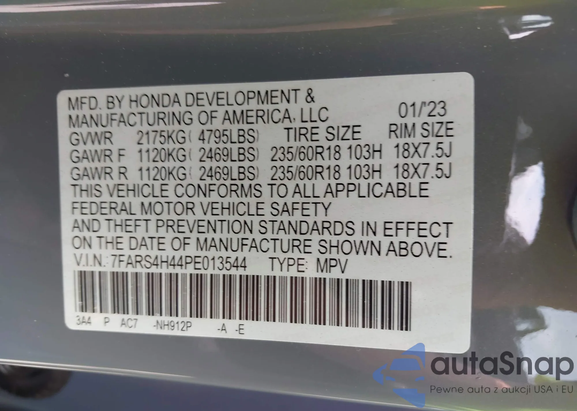 LOT: 42557750 VIN: 7FARS4H44PE013544