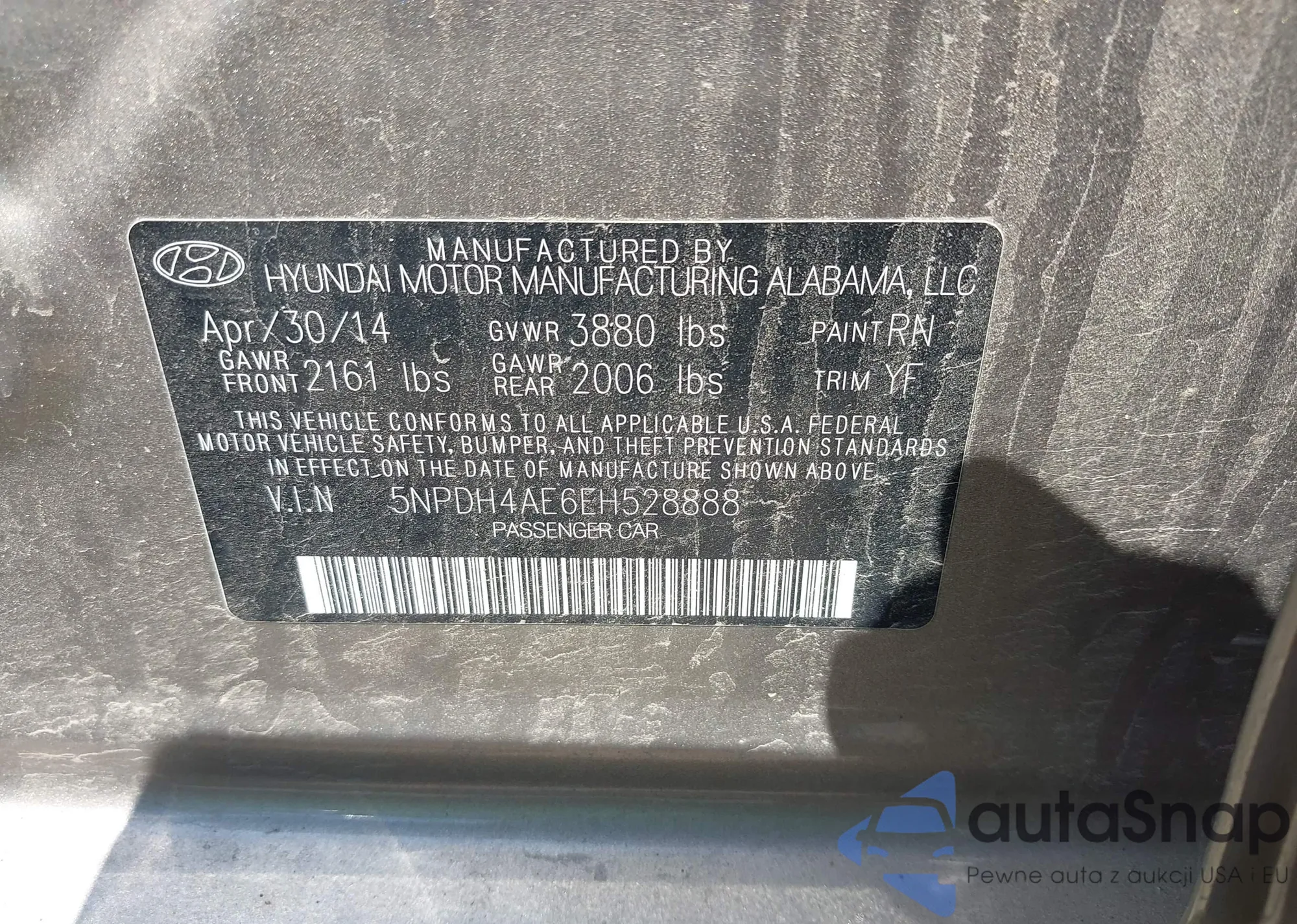• VIN 5NPDH4AEXEH488458