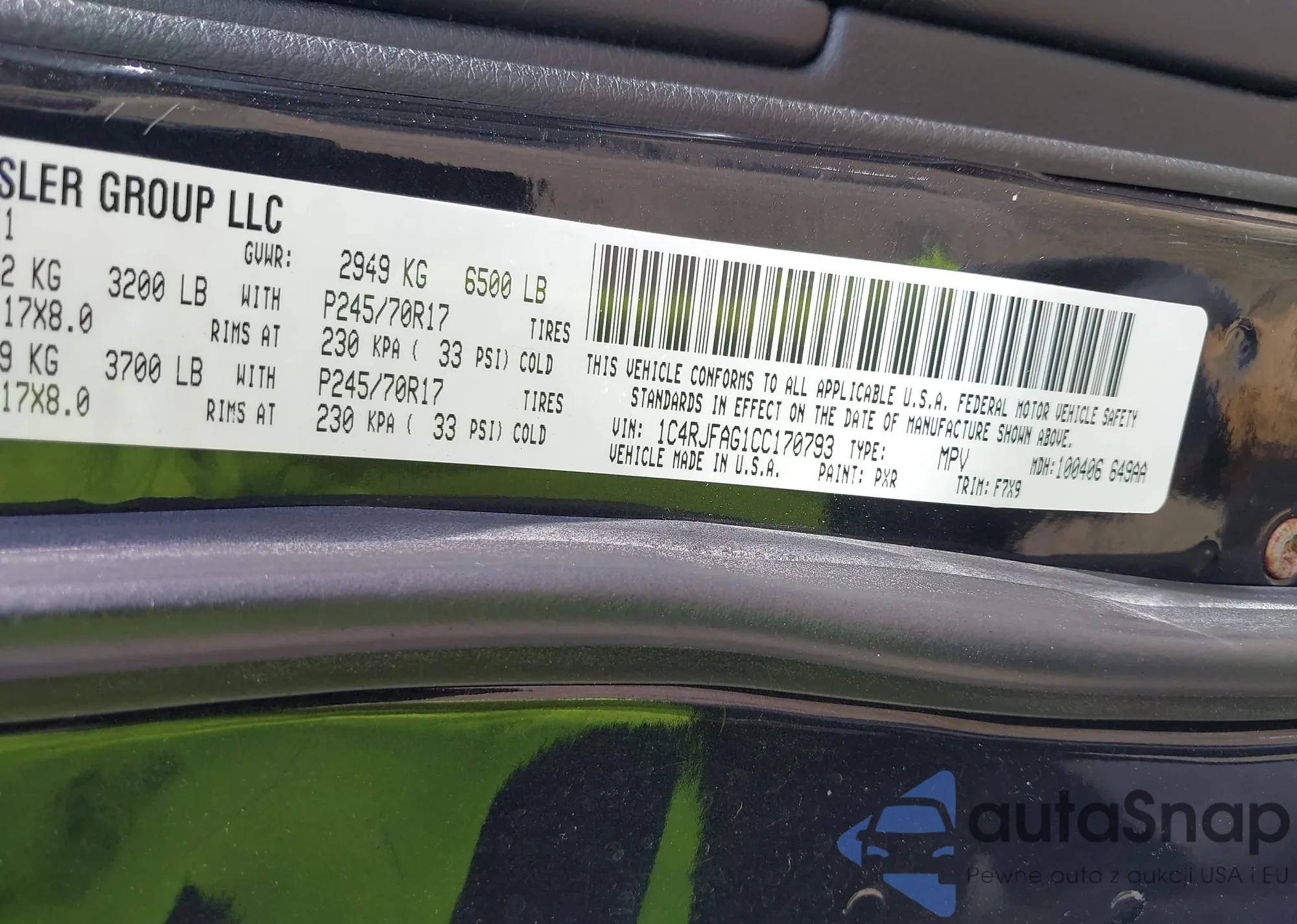• VIN 1C4RJFAG1CC170793