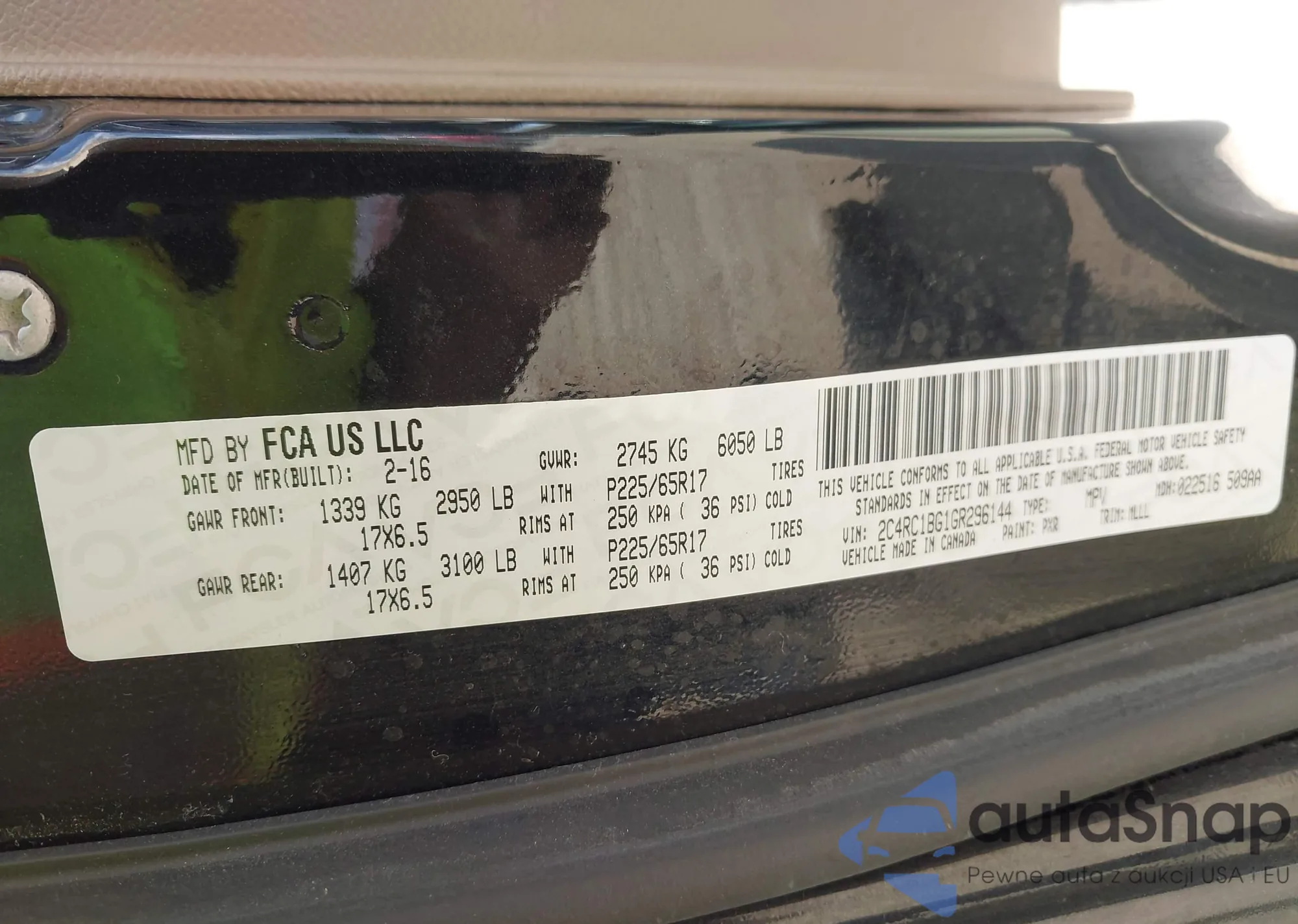 • VIN 2C4RC1BG1GR296144