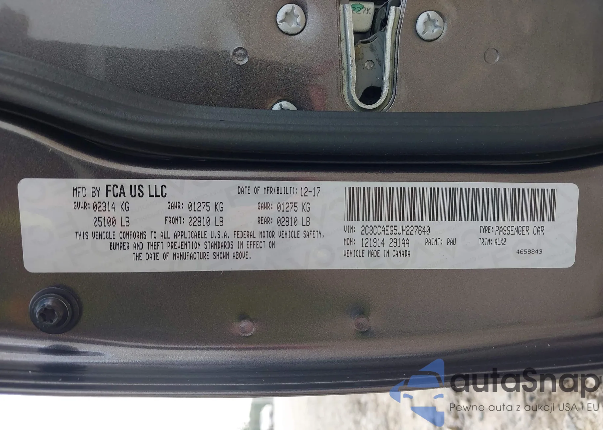 • VIN 2C3CCAEG5JH227640