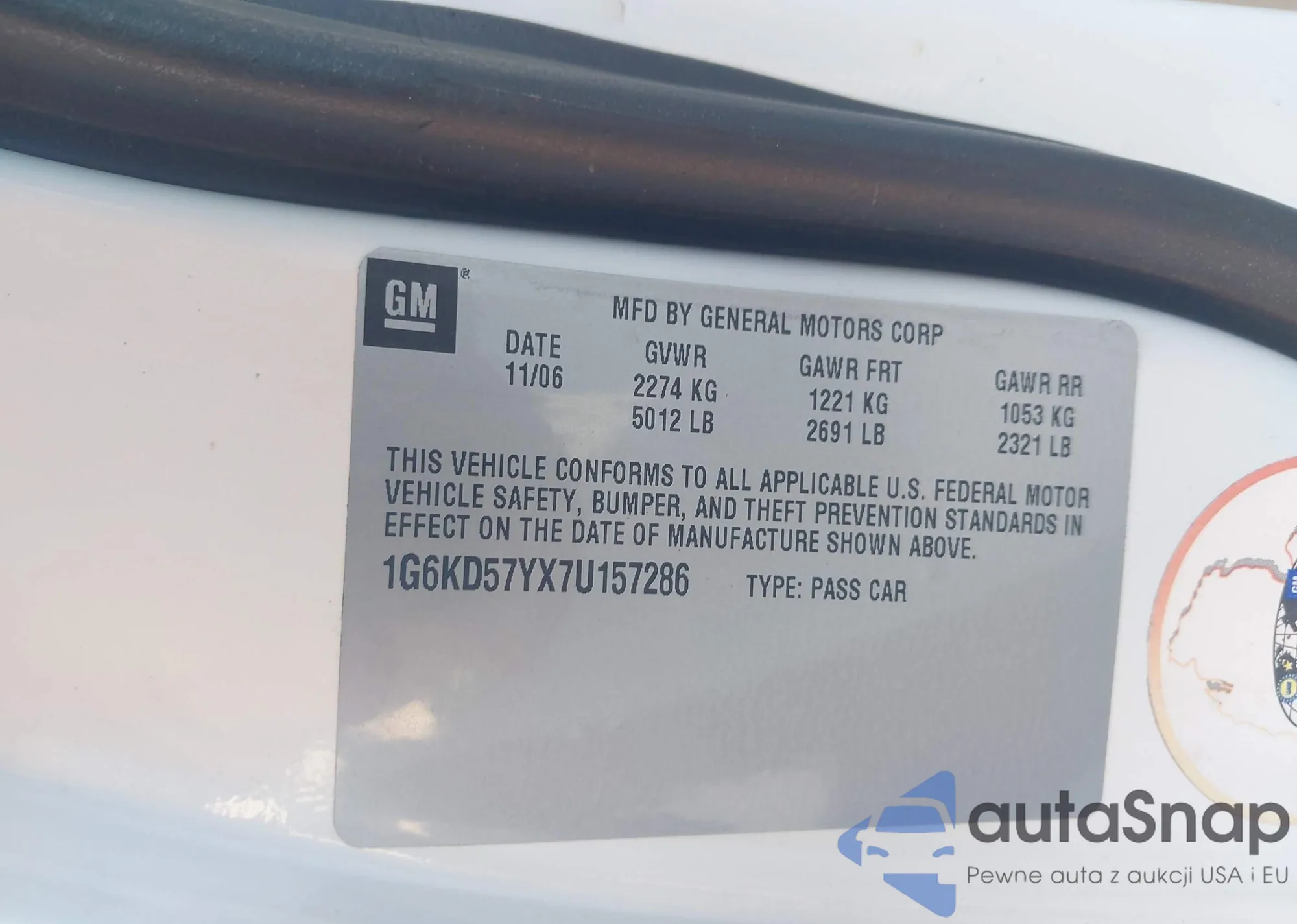 • VIN 1G6KD57YX7U157286