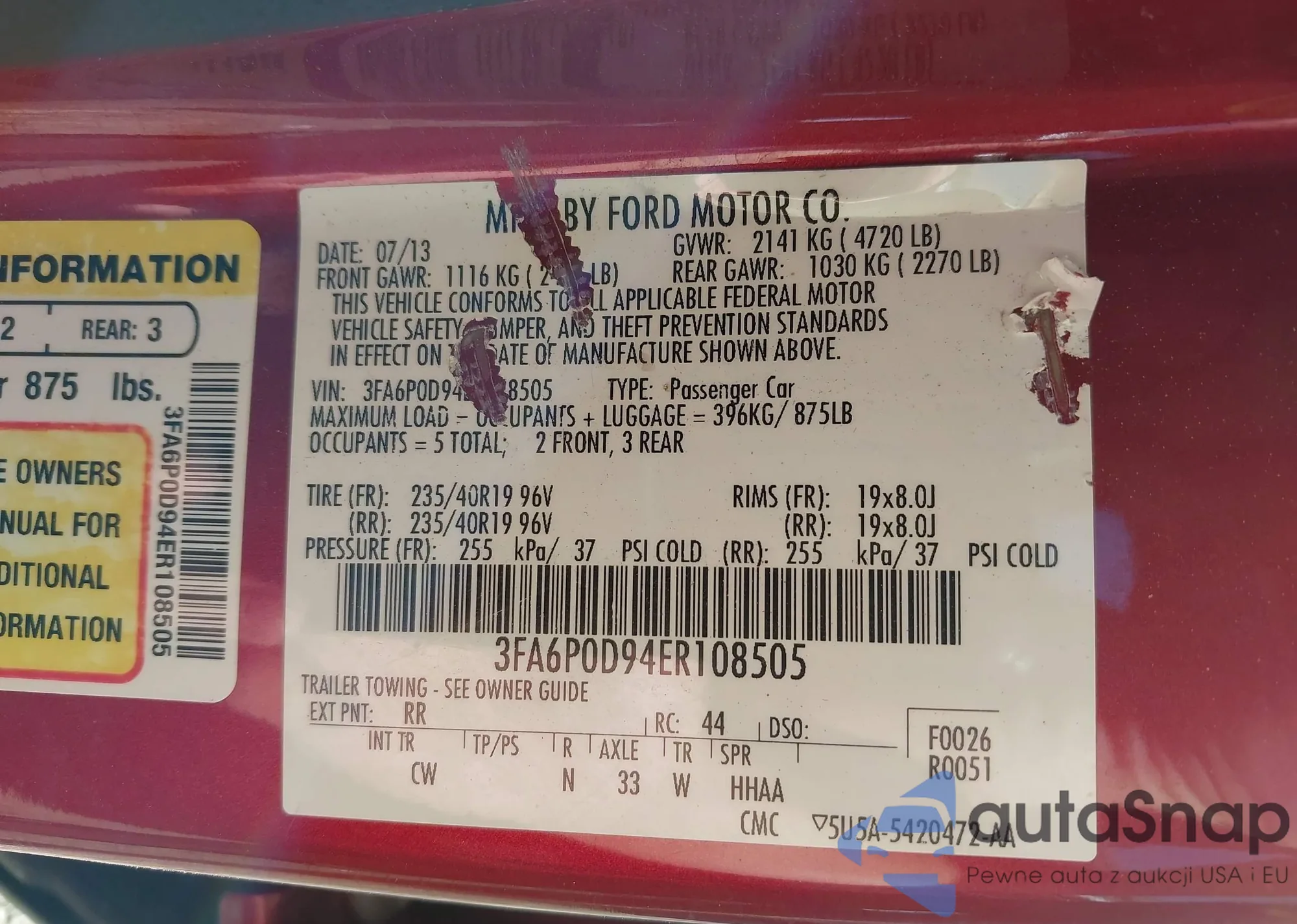 • VIN 3FA6P0D94ER108505