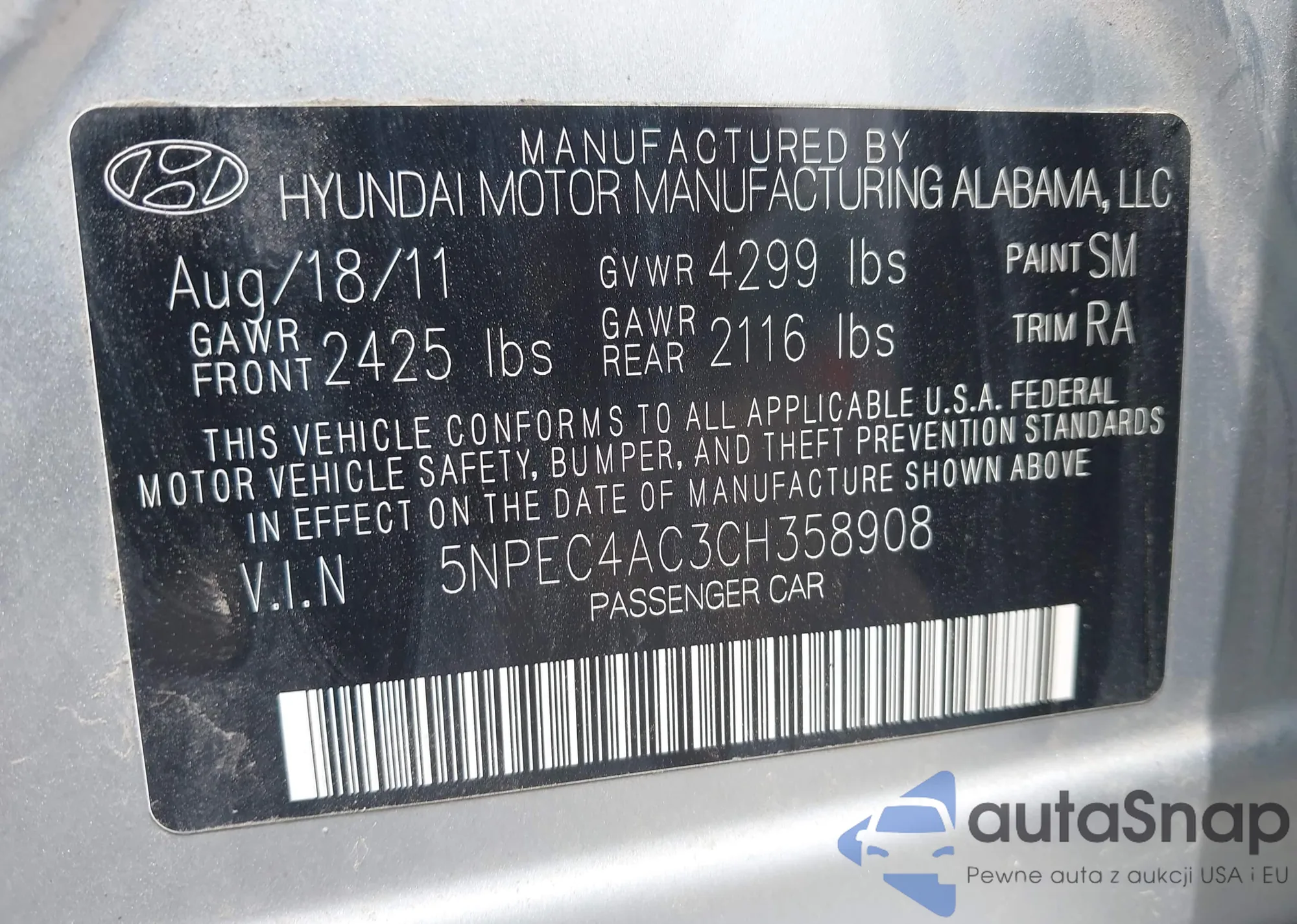• VIN 5NPEC4AC3CH358908