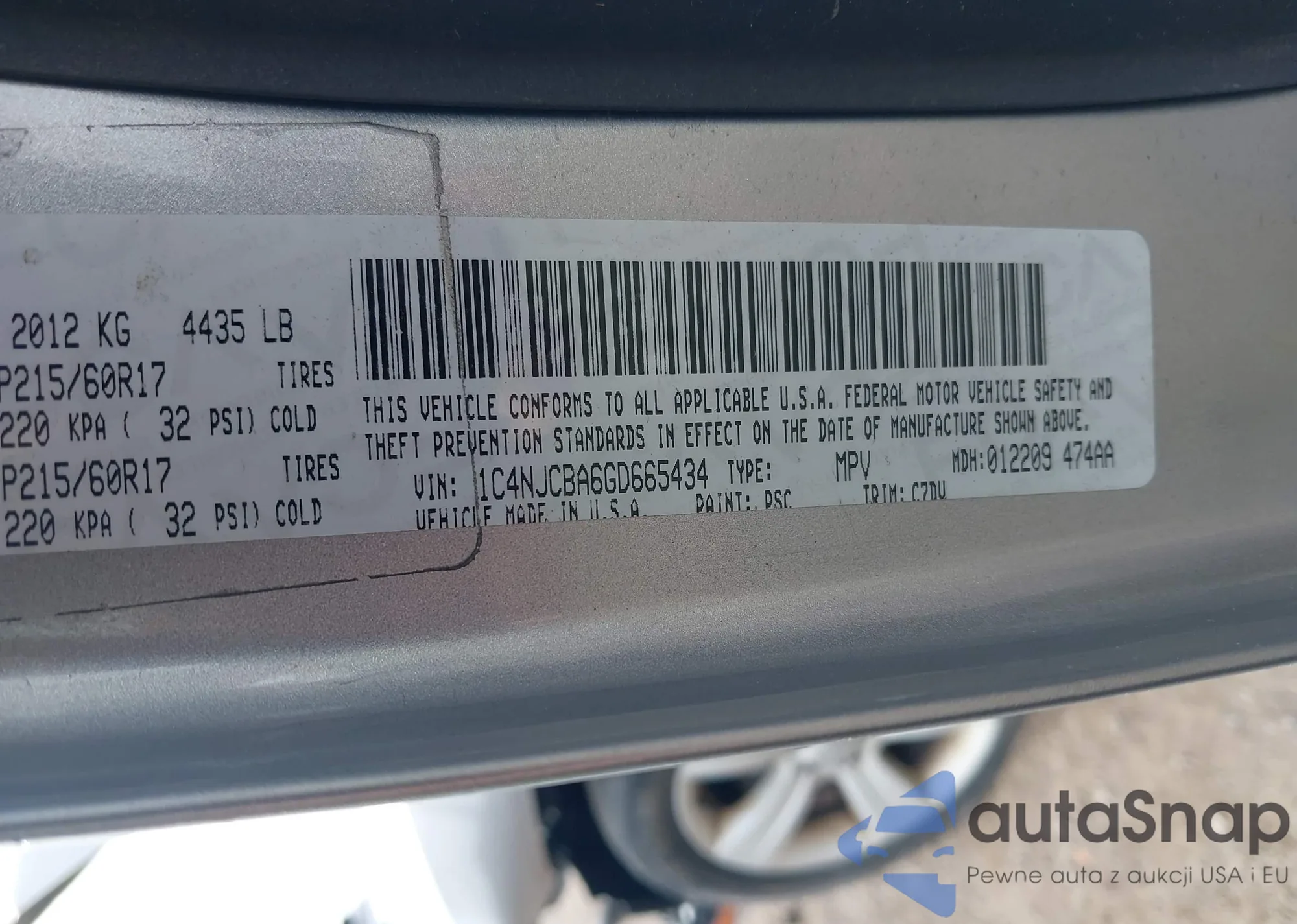 • VIN 1C4NJCBA6GD665434