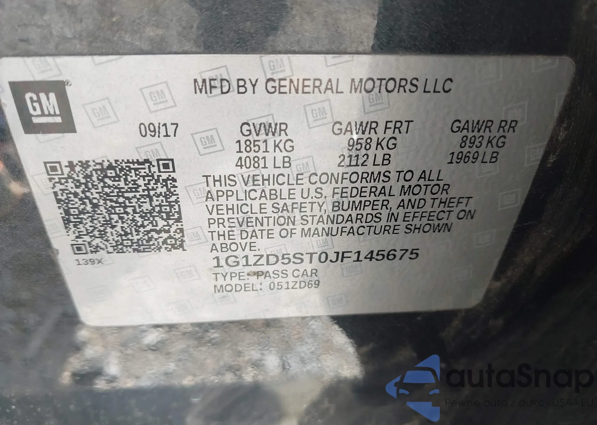 LOT: 42336320 VIN: 1G1ZD5ST0JF145675