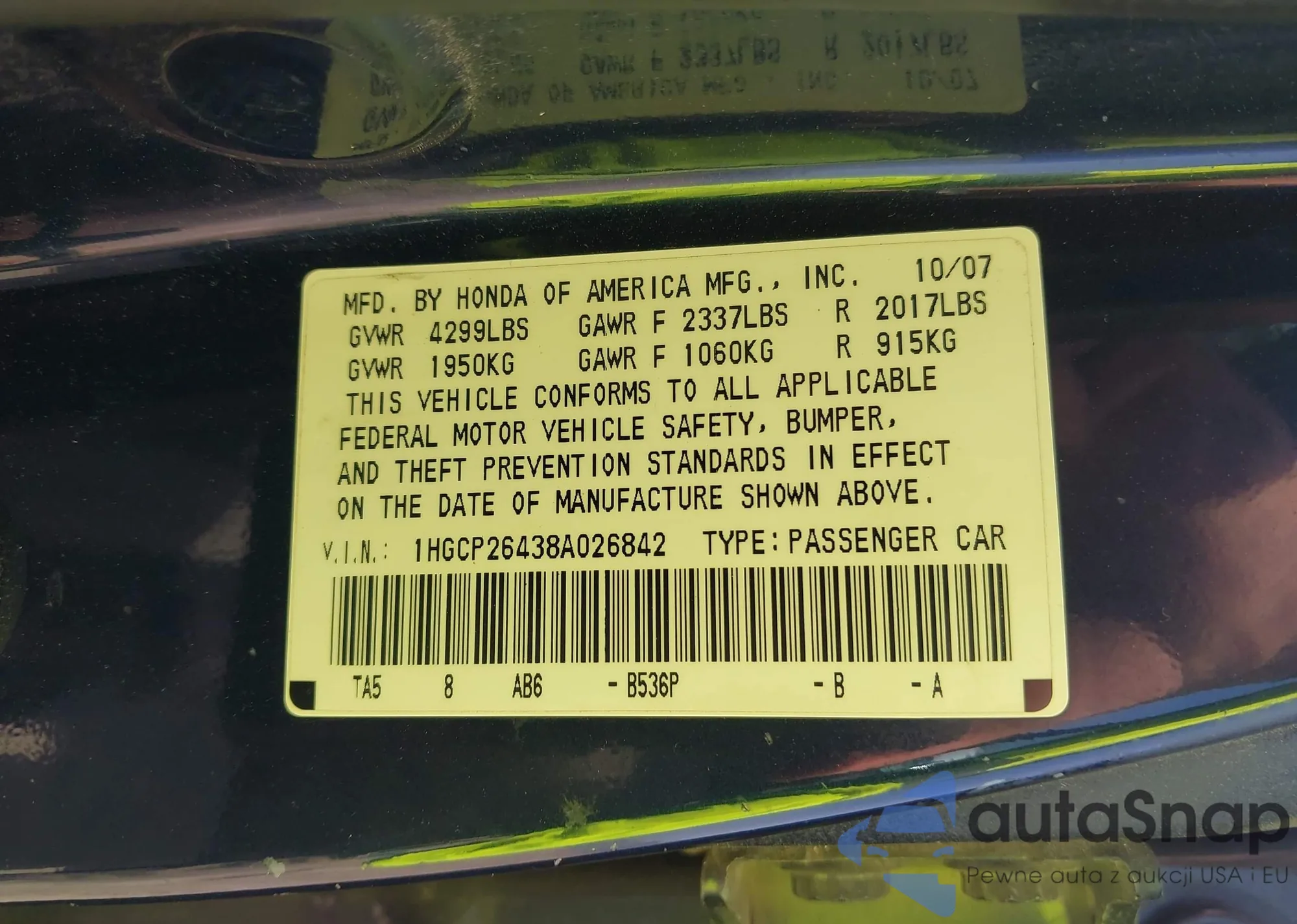 LOT: 42629894 VIN: 1HGCP26438A026842