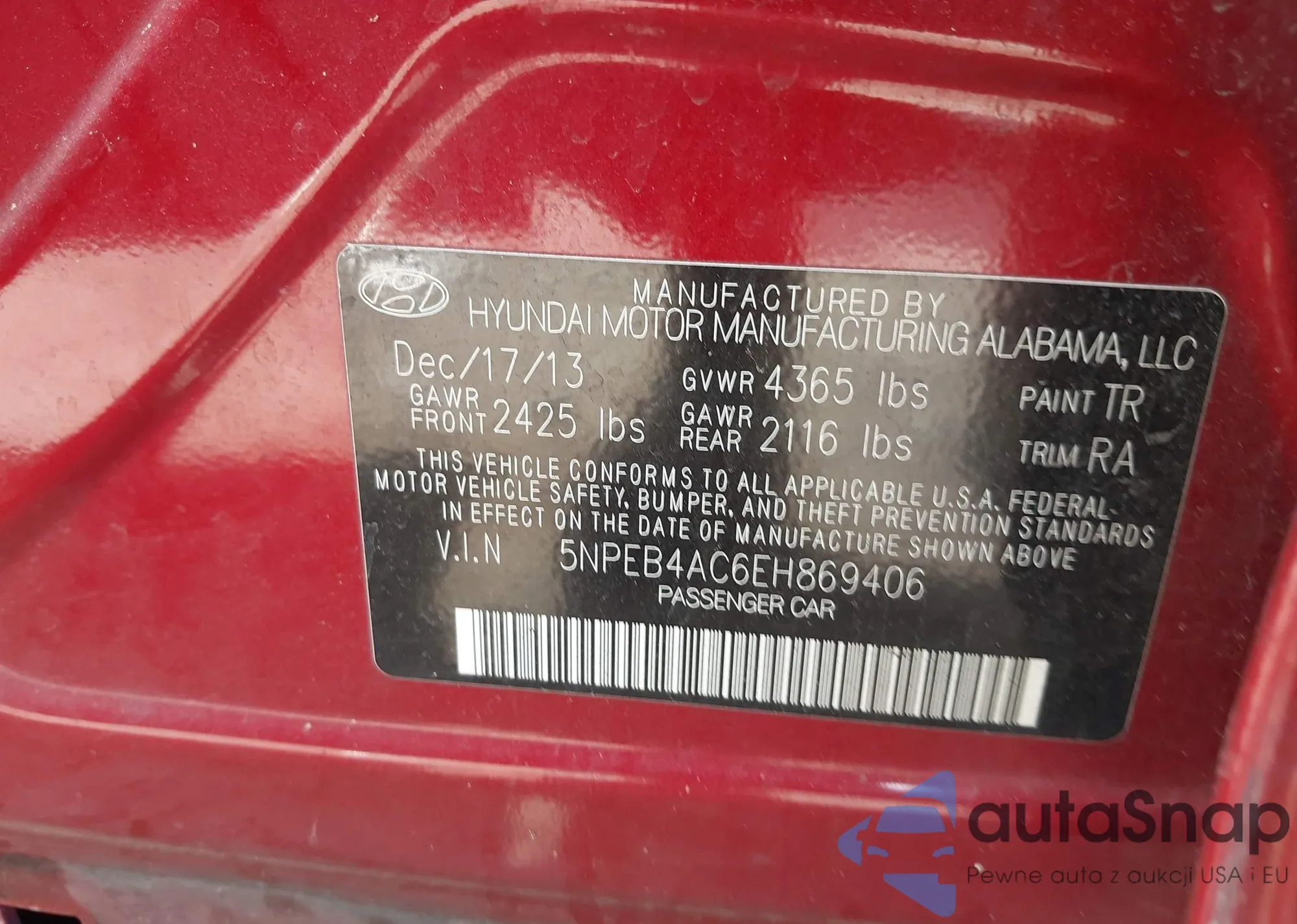 • VIN 5NPEB4AC6EH869406