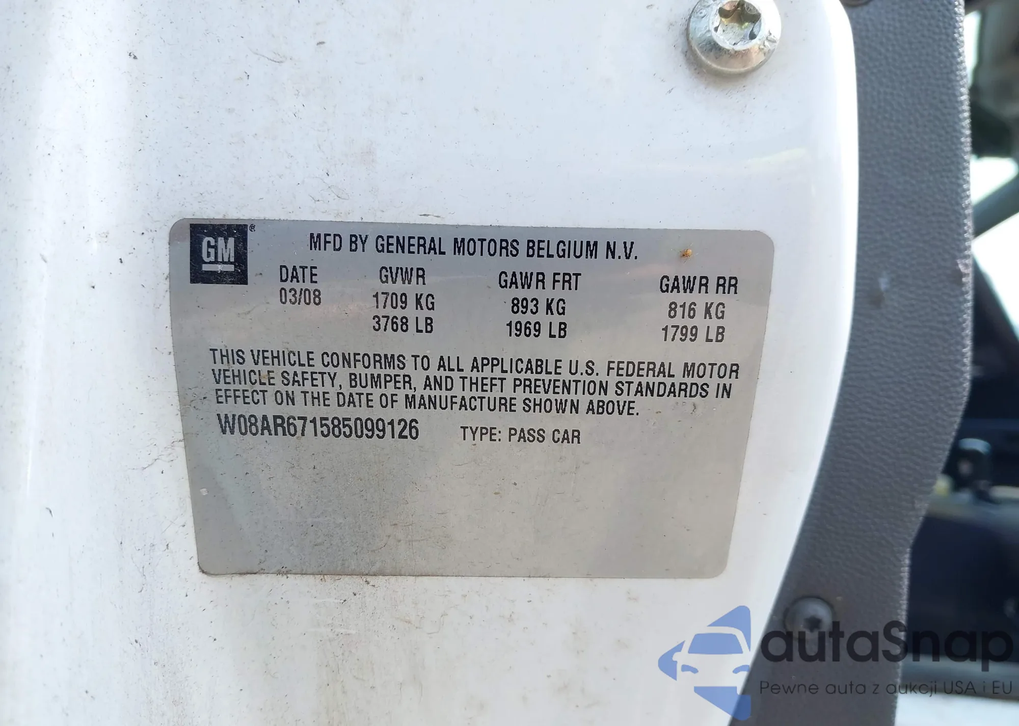 LOT: 42481697 VIN: W08AR671585099126