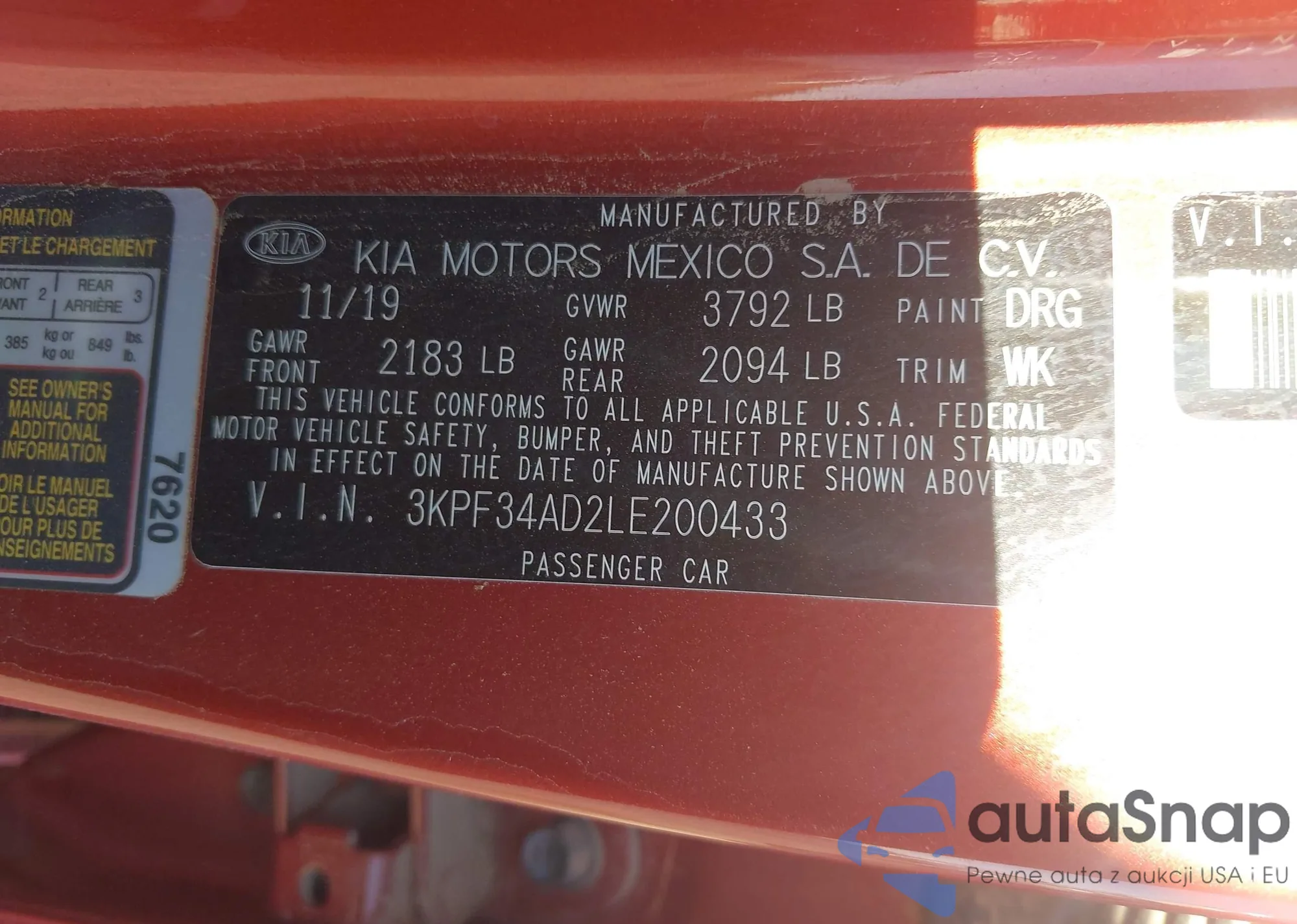 LOT: 42962952 VIN: 3KPF34AD2LE200433