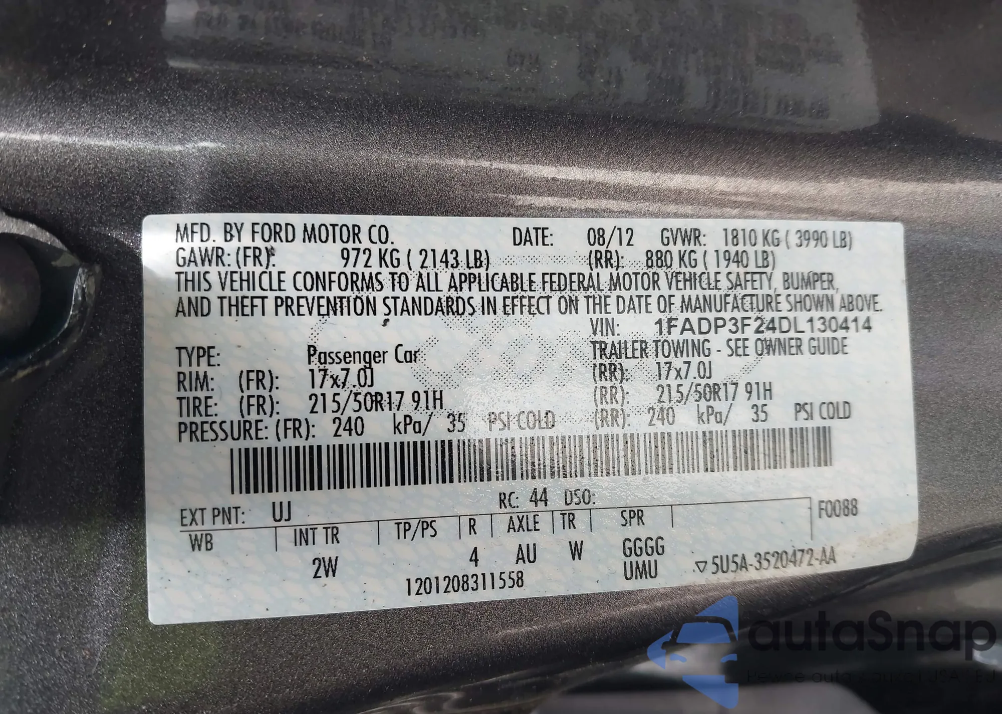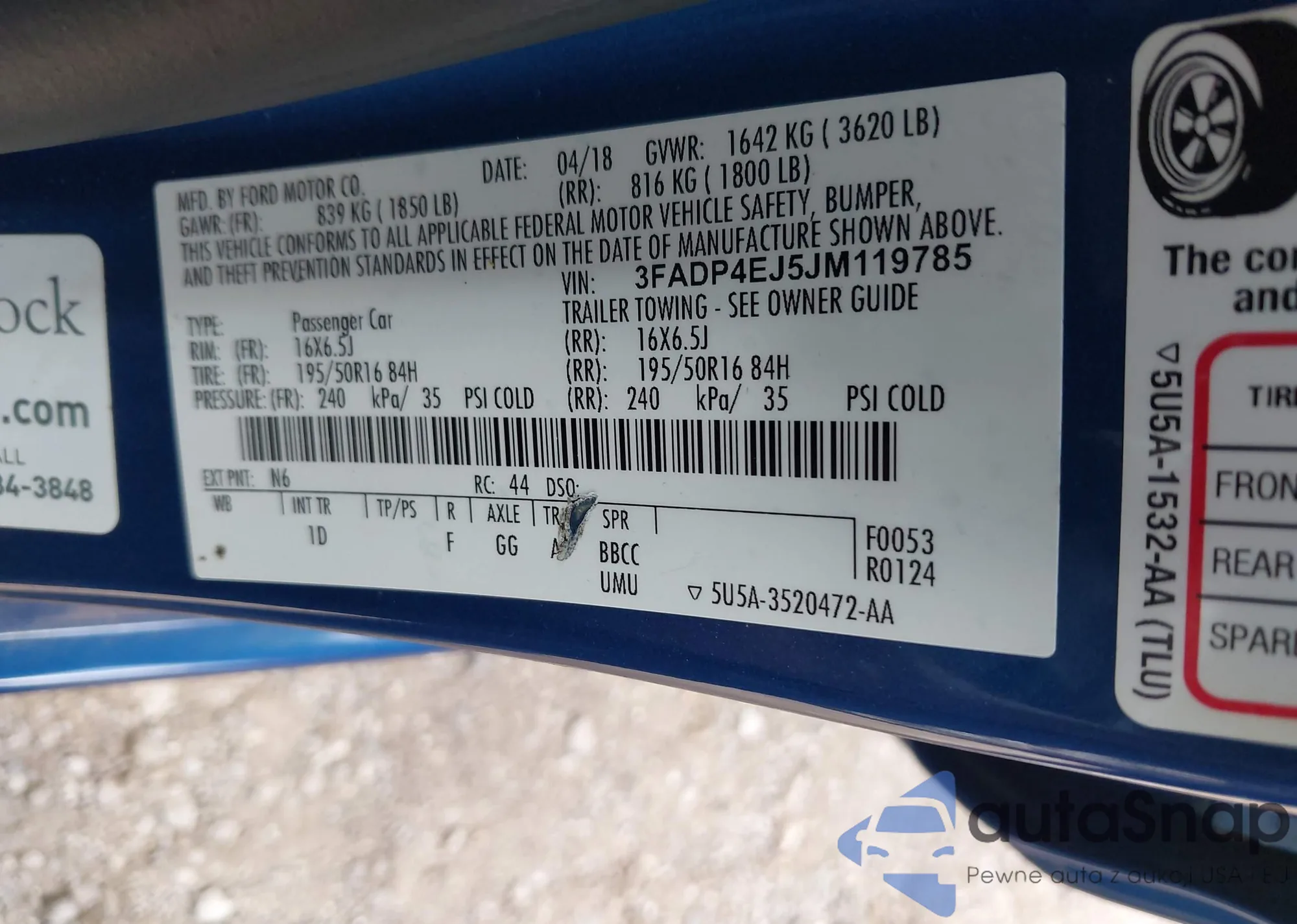 • VIN 3FADP4EJ5JM119785