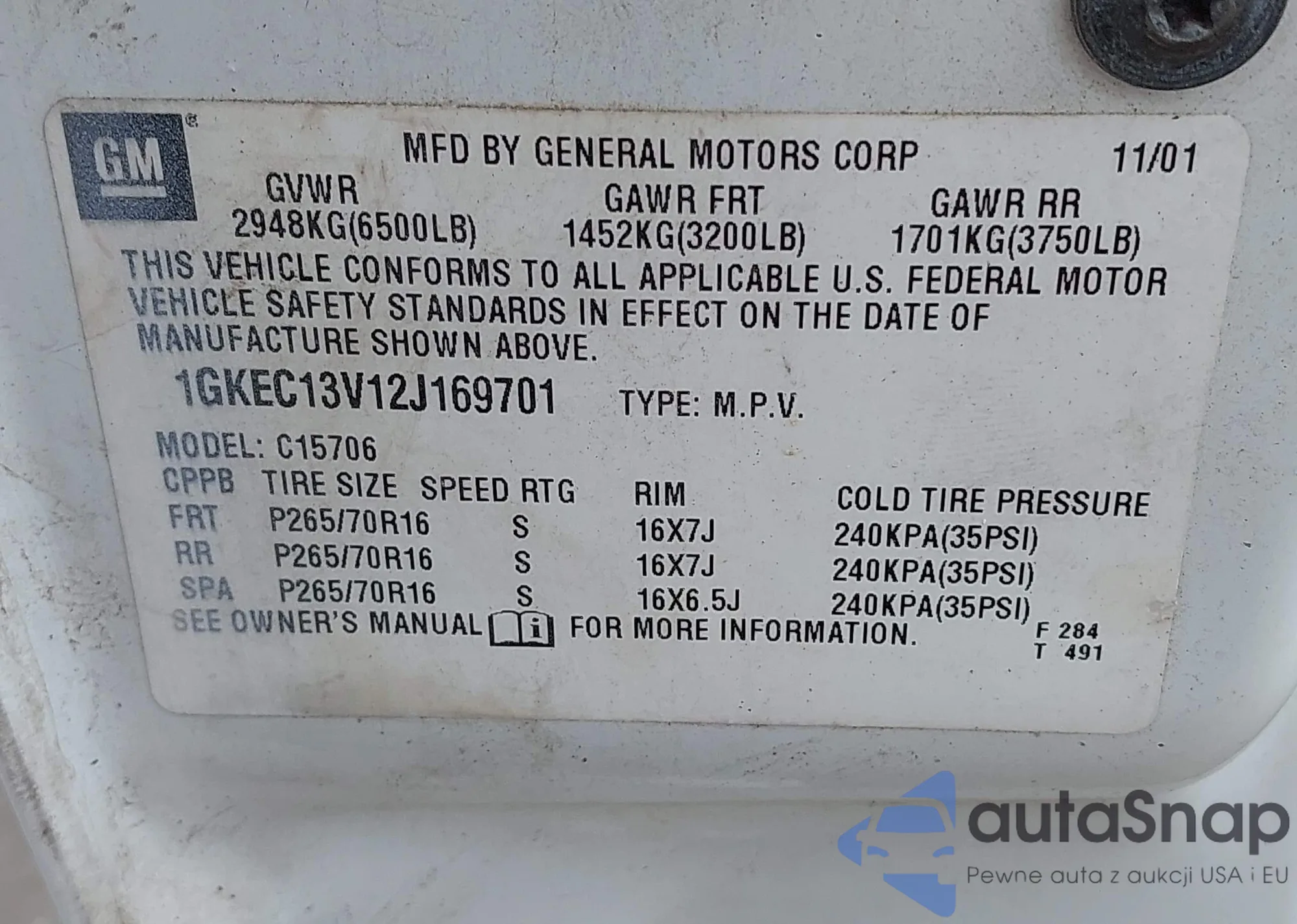 • VIN 1GKEC13V12J169701