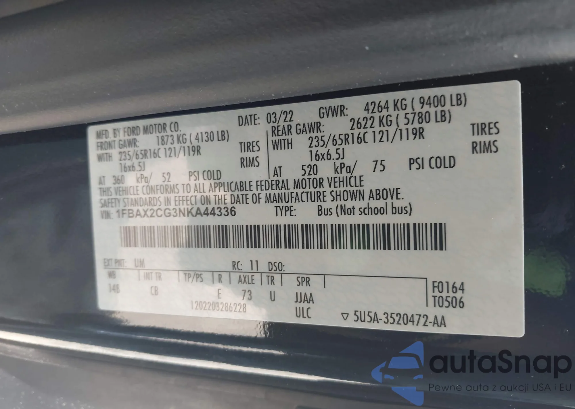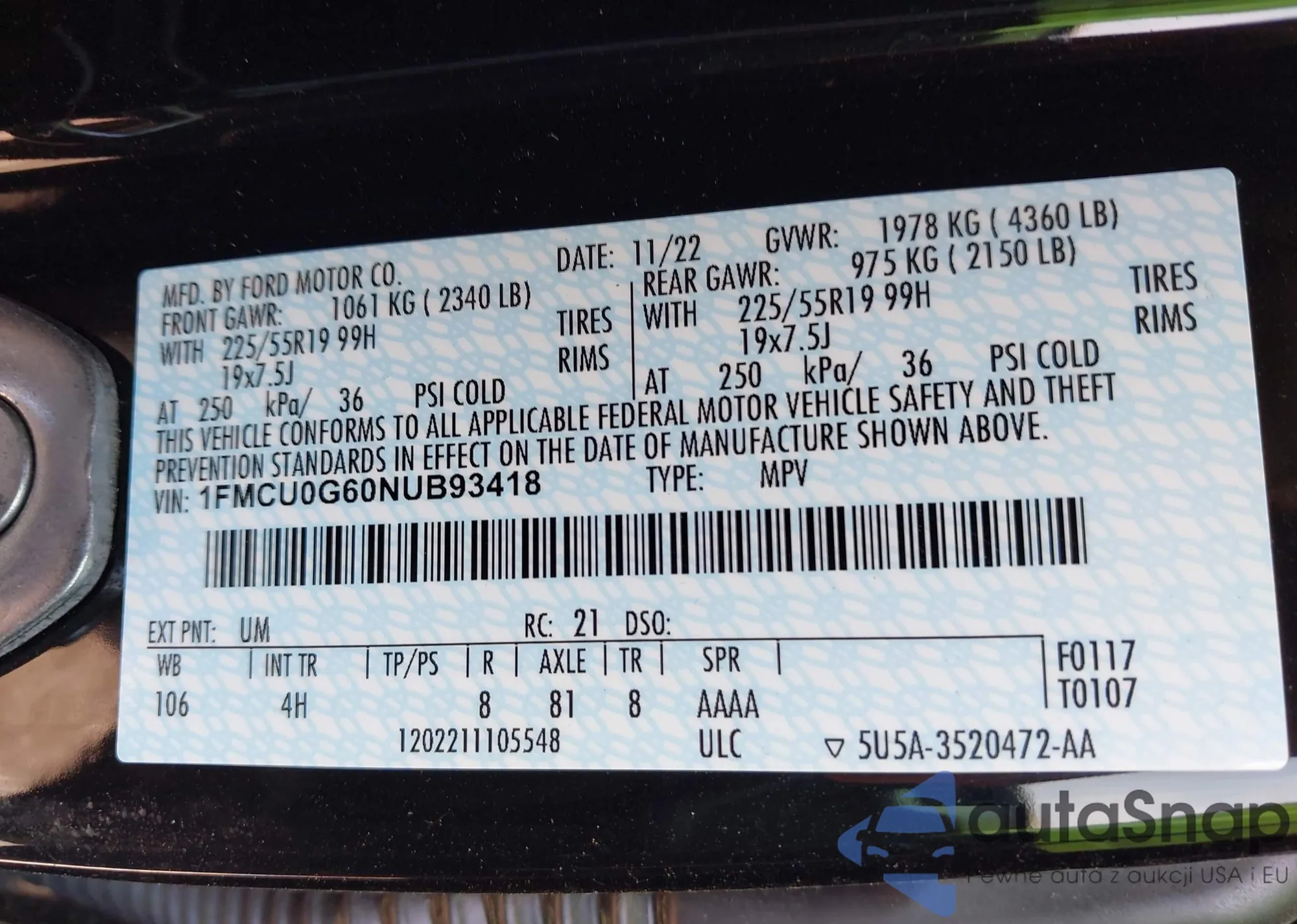 • VIN 1FMCU0G60NUB93418
