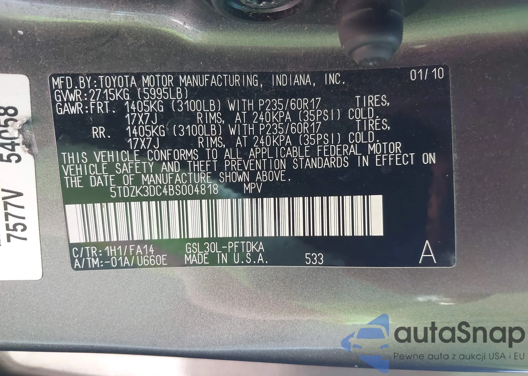 • VIN 5TDZK3DC4BS004818