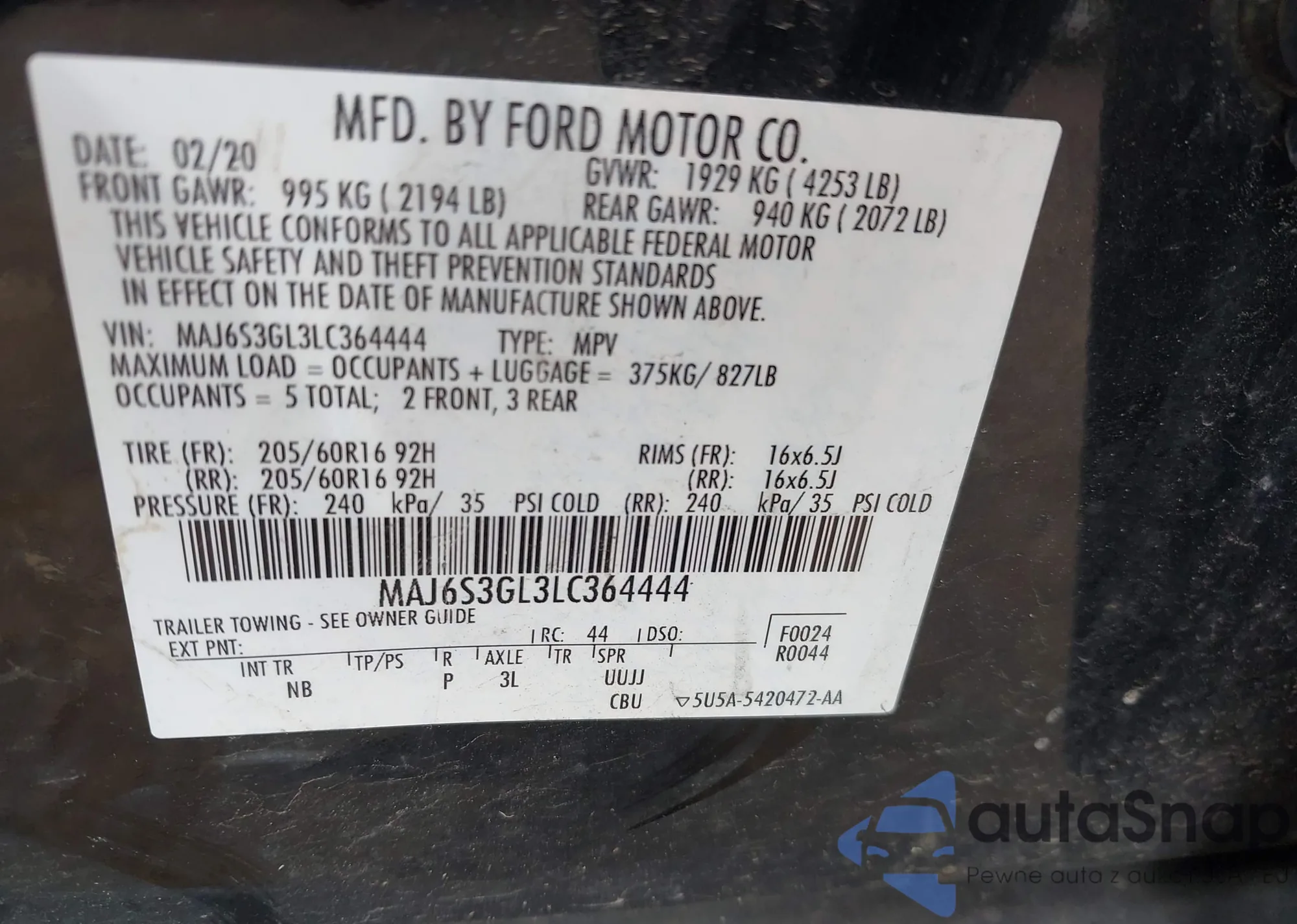 • VIN MAJ6S3GL3LC364444