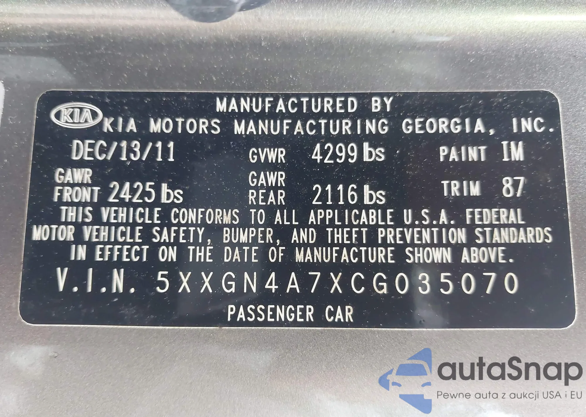 • VIN 1HGCP2F89BA013538