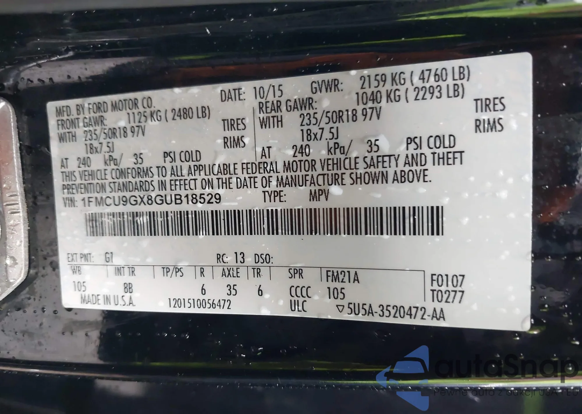• VIN 1FMCU9GX8GUB18529