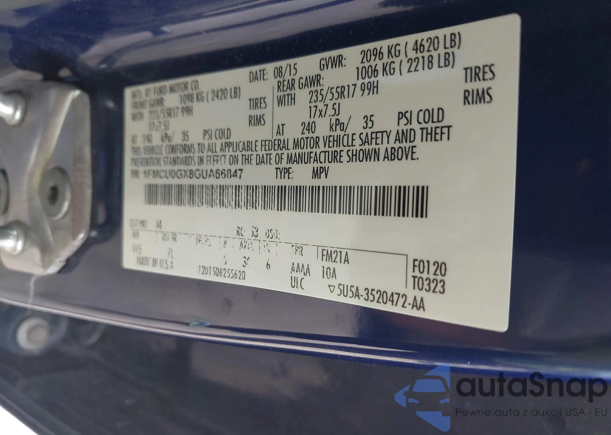 LOT: 43005367 VIN: 1FMCU0GX8GUA66847