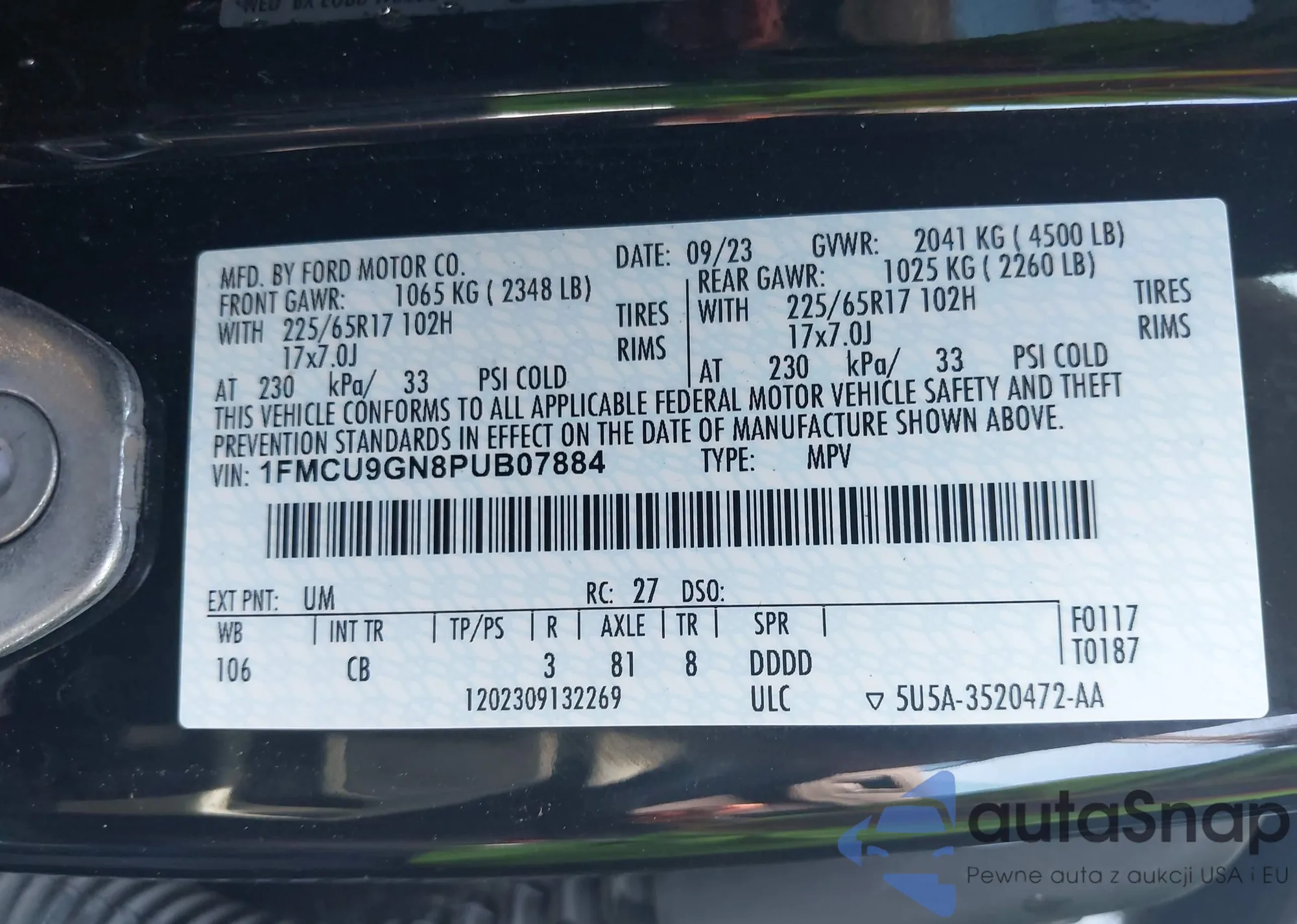 LOT: 42681891 VIN: 1FMCU9GN8PUB07884