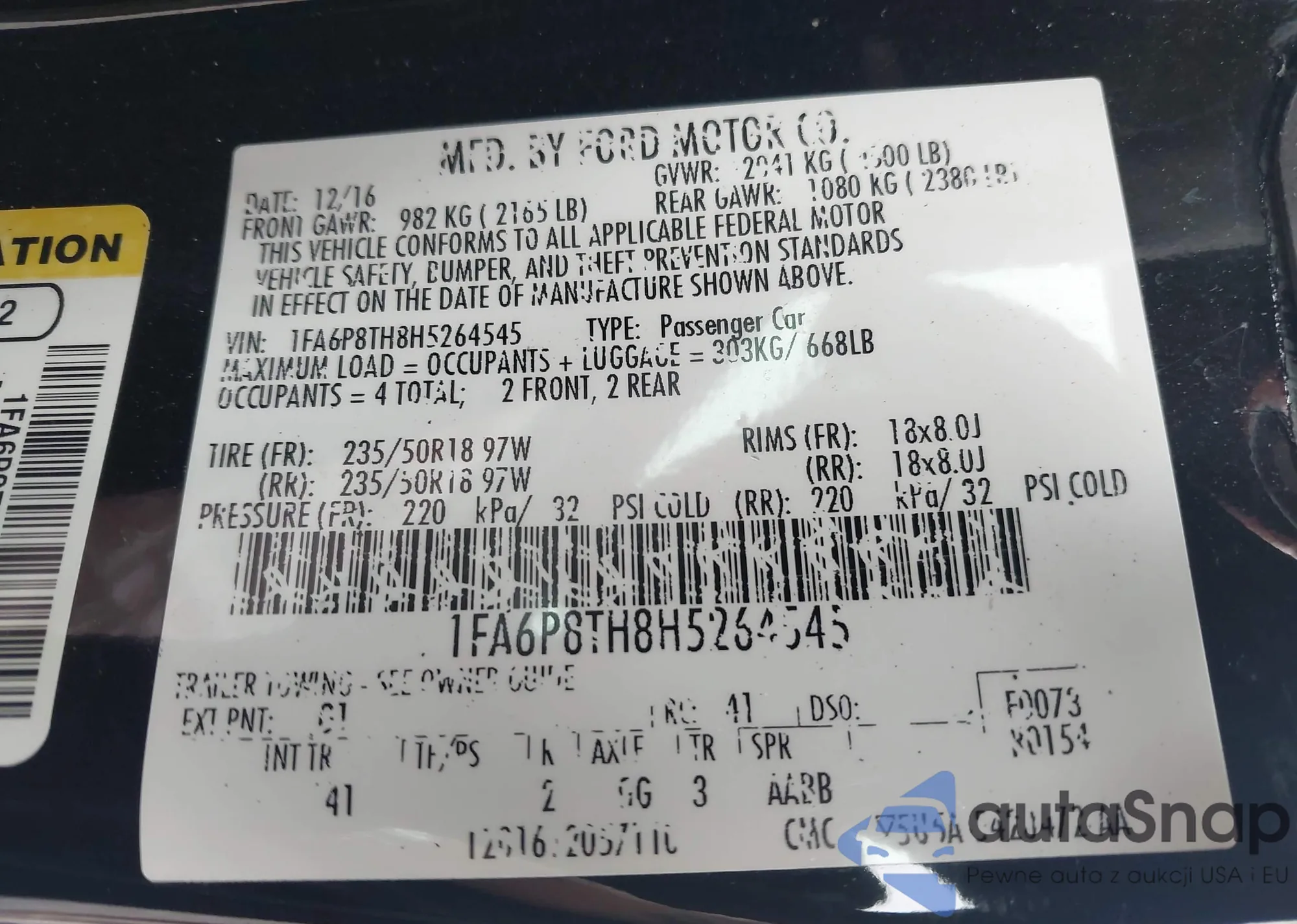 • VIN 1FA6P8TH8H5264545