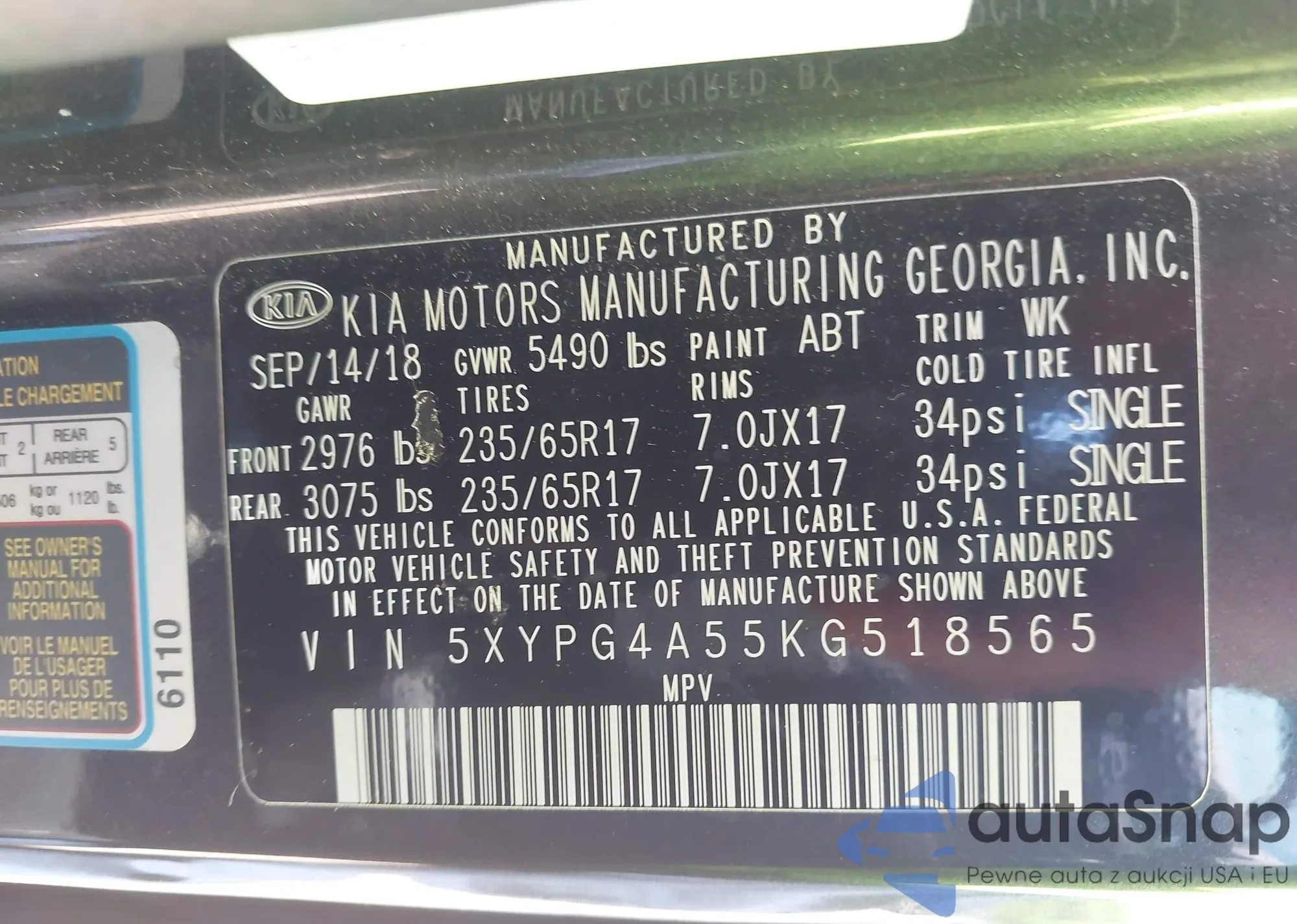 • VIN 5XYPG4A55KG518565