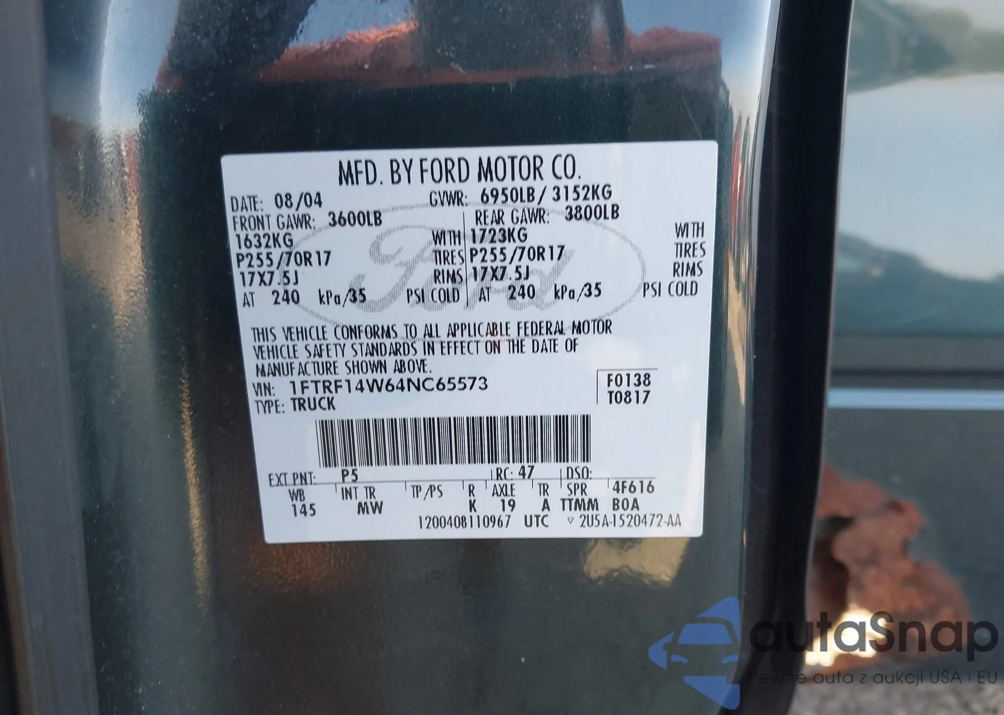 • VIN 1FTRF14W64NC65573