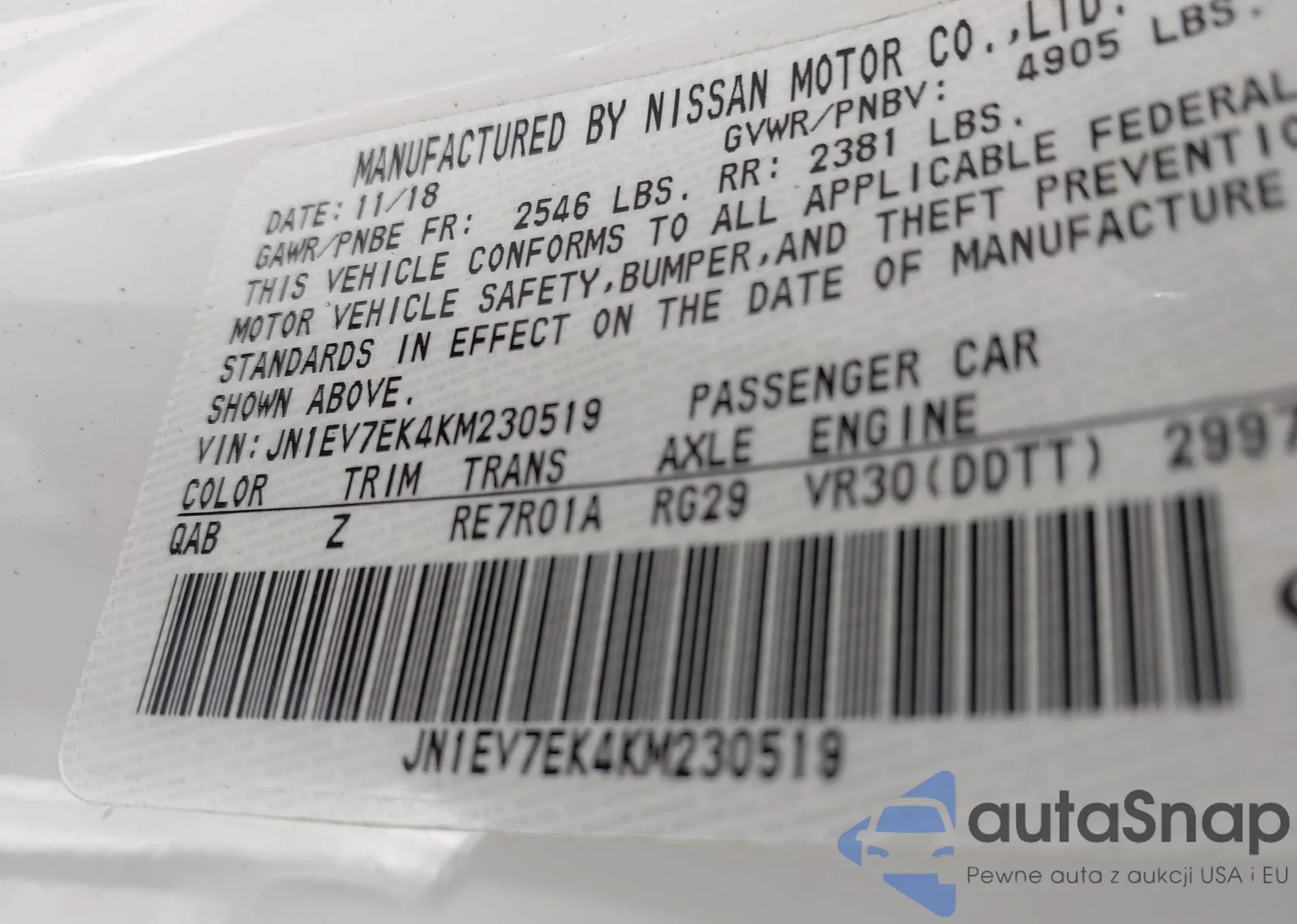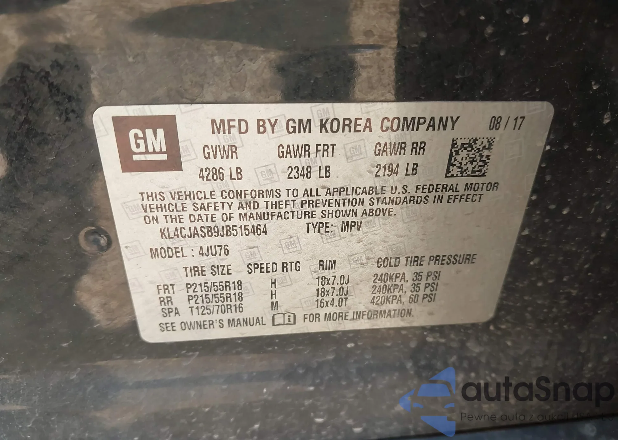 • VIN KL4CJASB9JB515464
