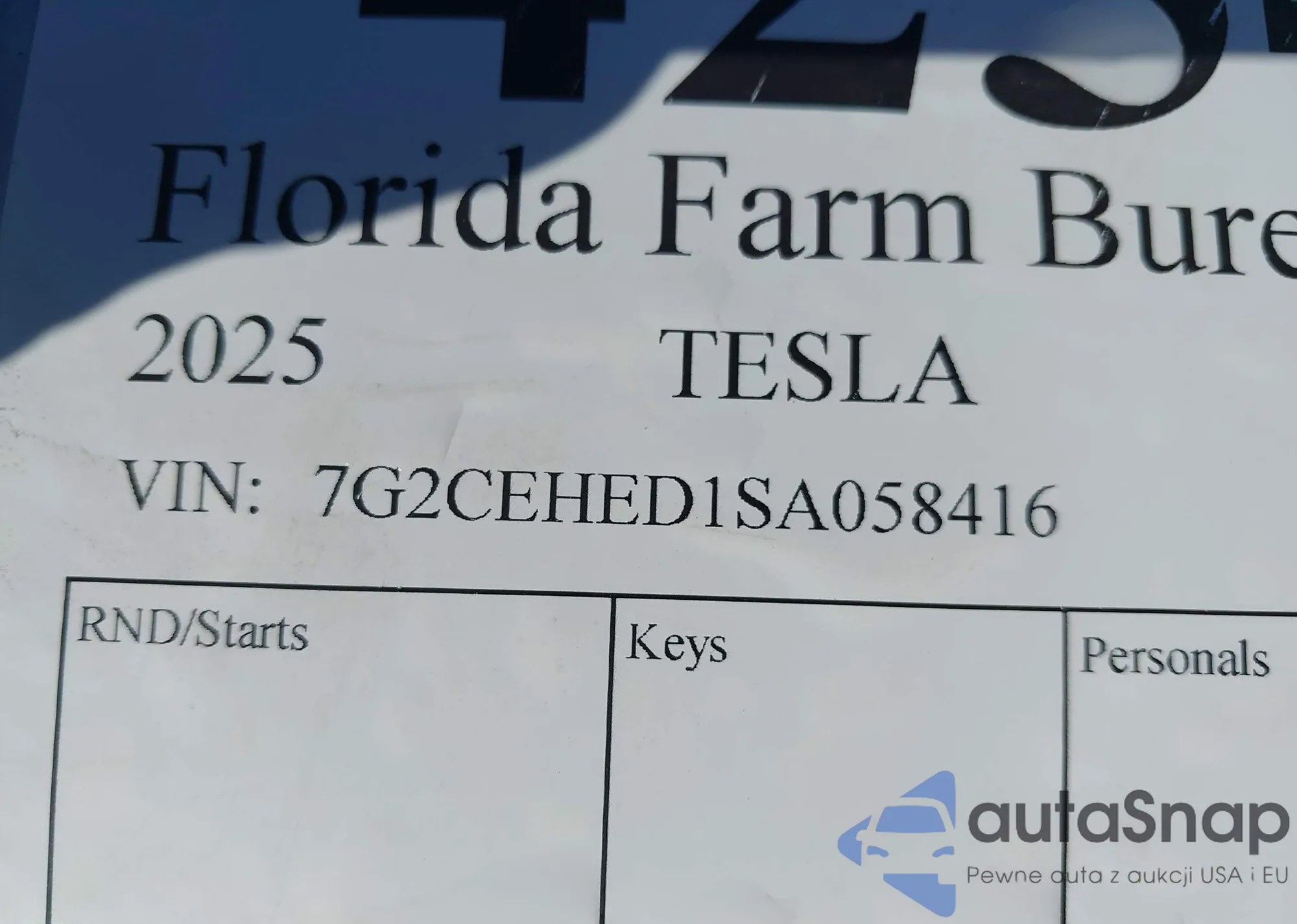 2025 Tesla Cybertruck z USA, uszkodzony, nr VIN 7G2CEHED1SA058416