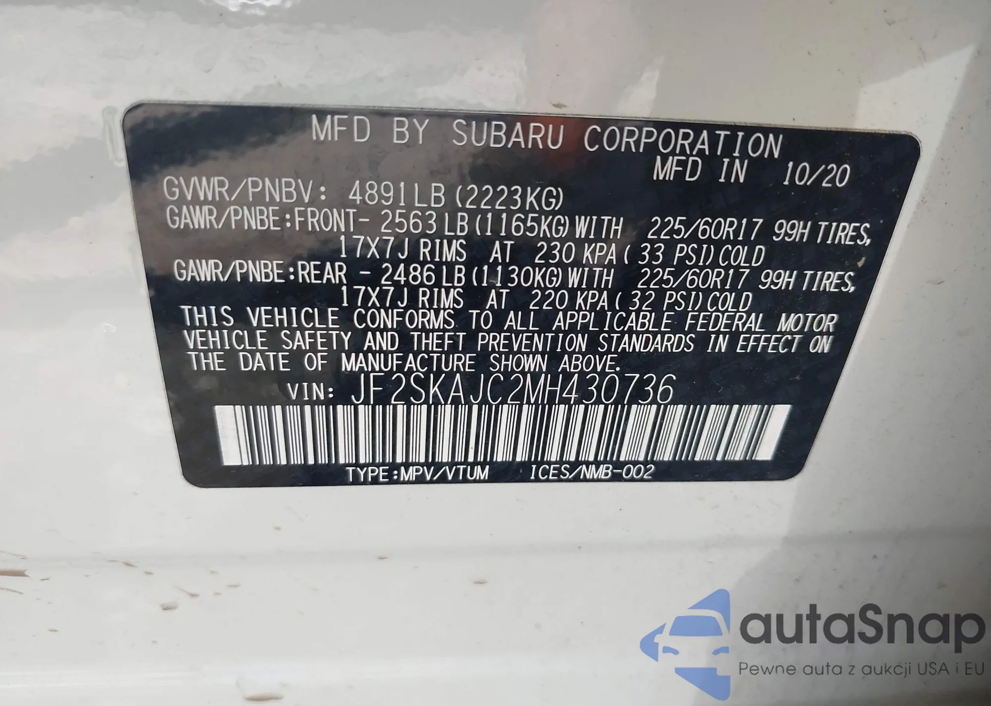 • VIN JF2SKAJC2MH430736