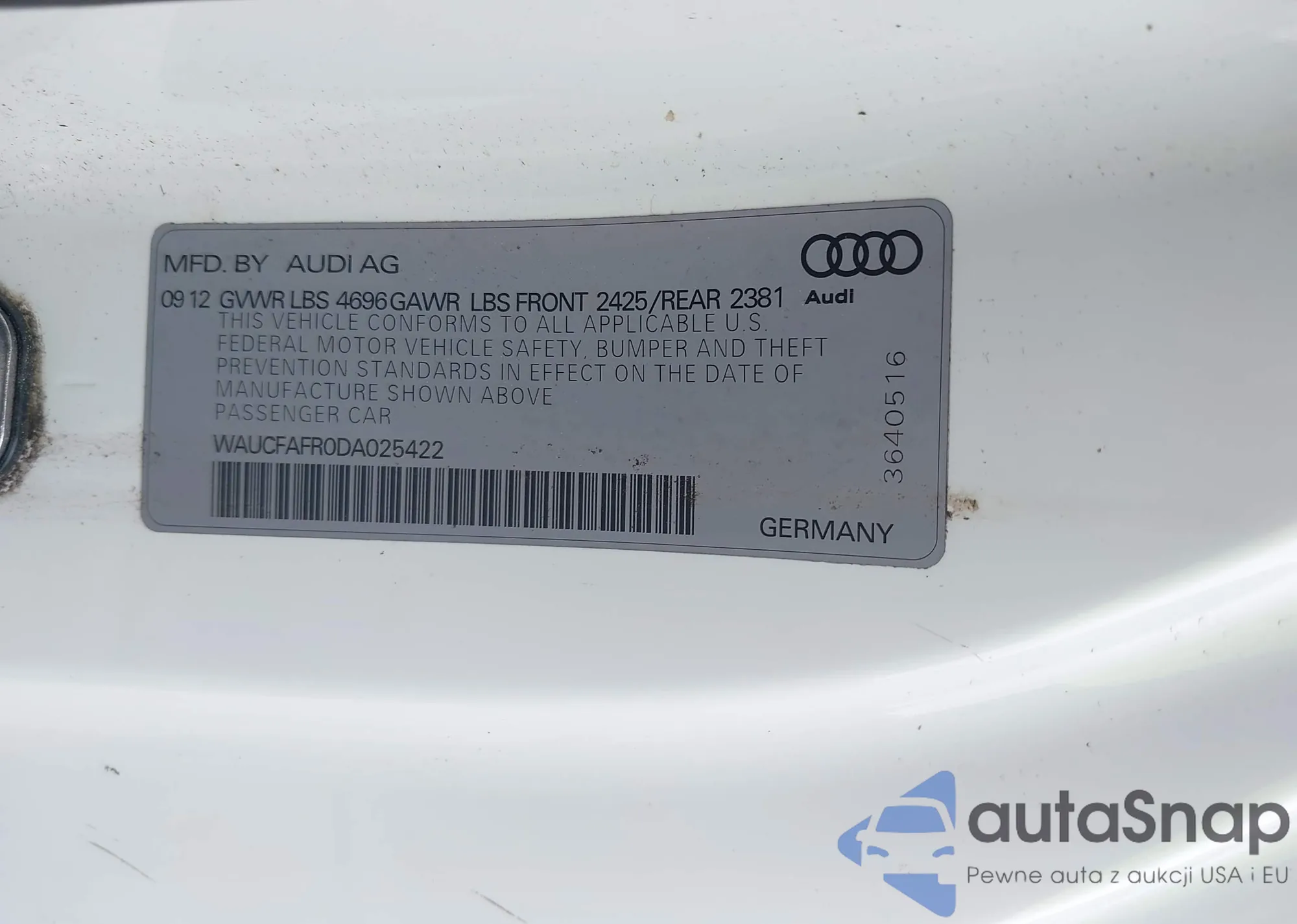 LOT: 42745818 VIN: WAUCFAFR0DA025422