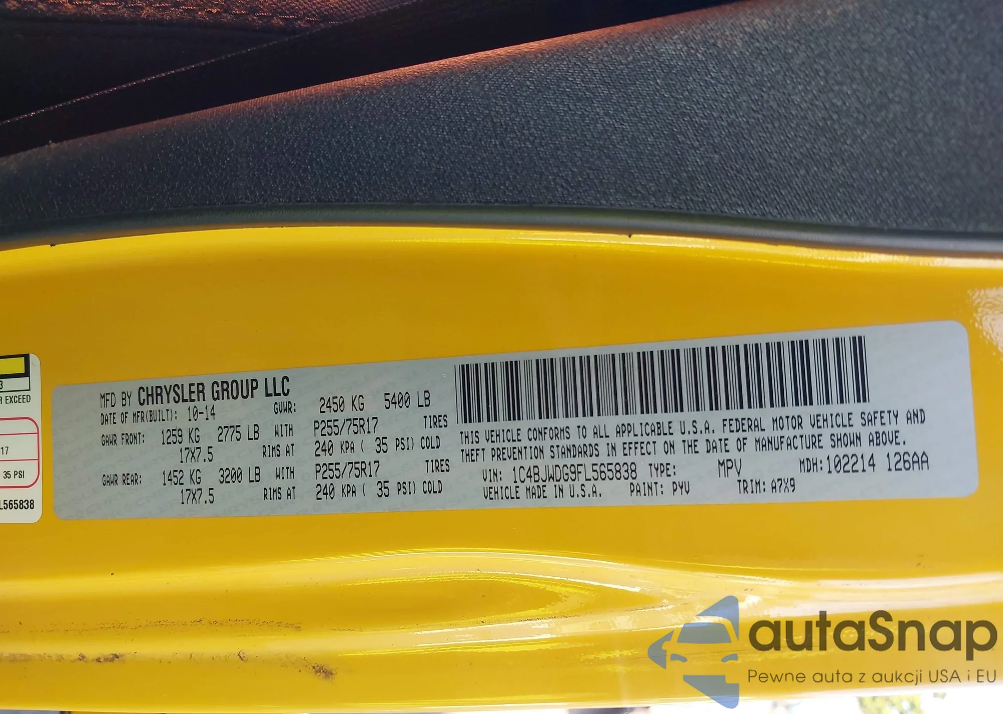 • VIN 1C4BJWDG9FL565838