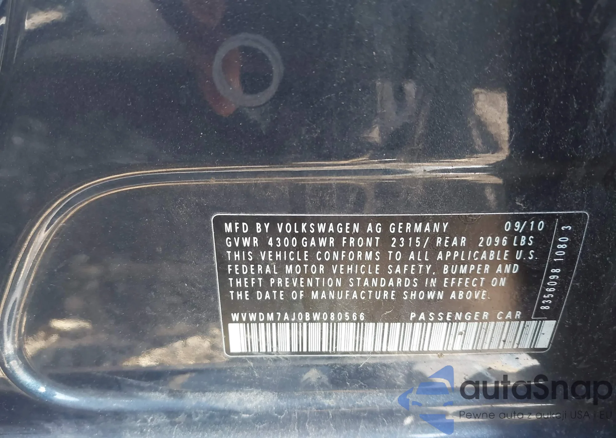 • VIN WVWDM7AJ0BW080566