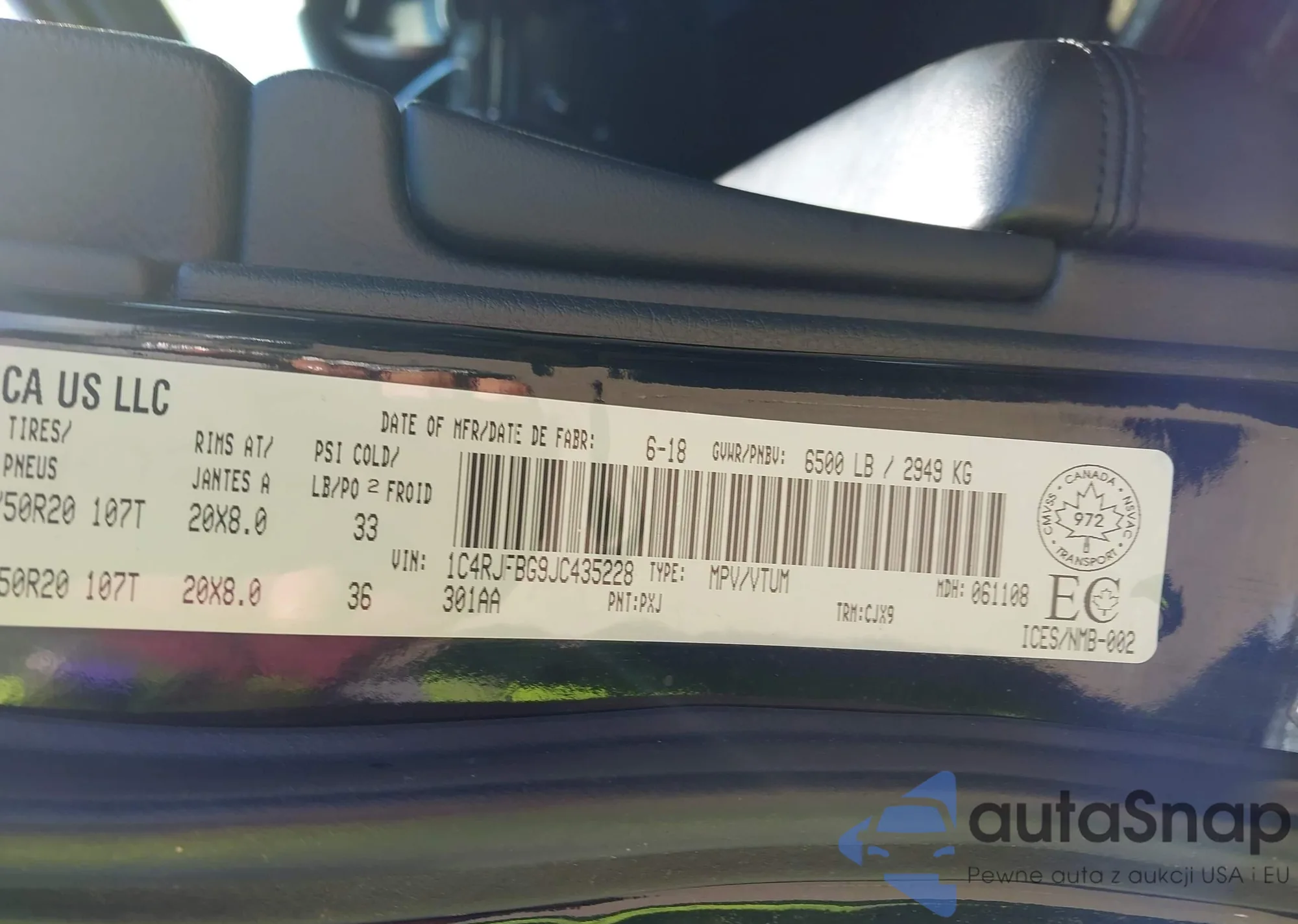 • VIN 1C4RJFBG9JC435228
