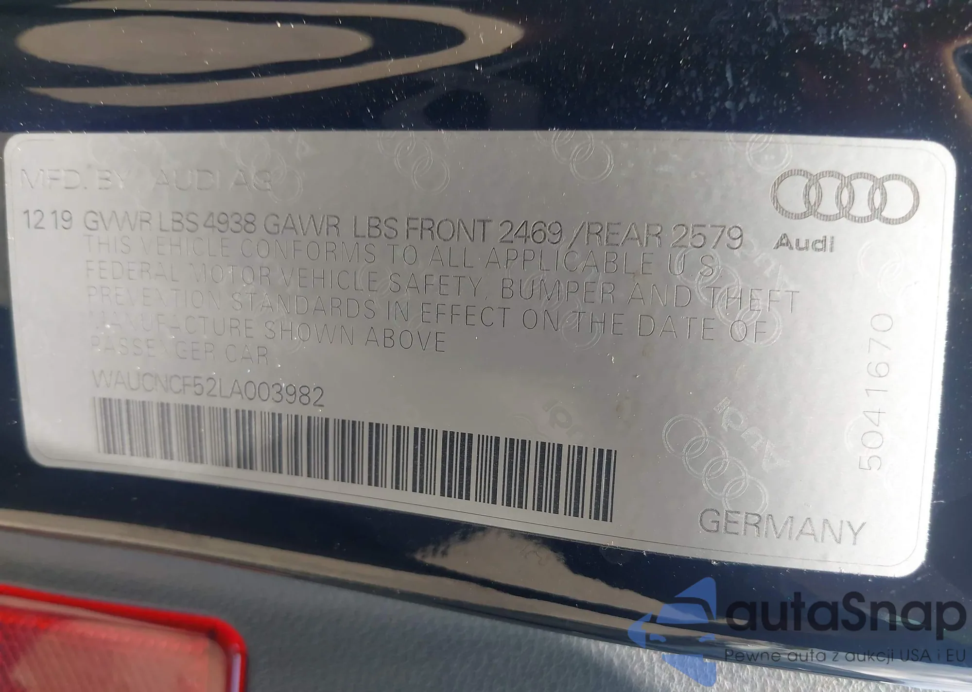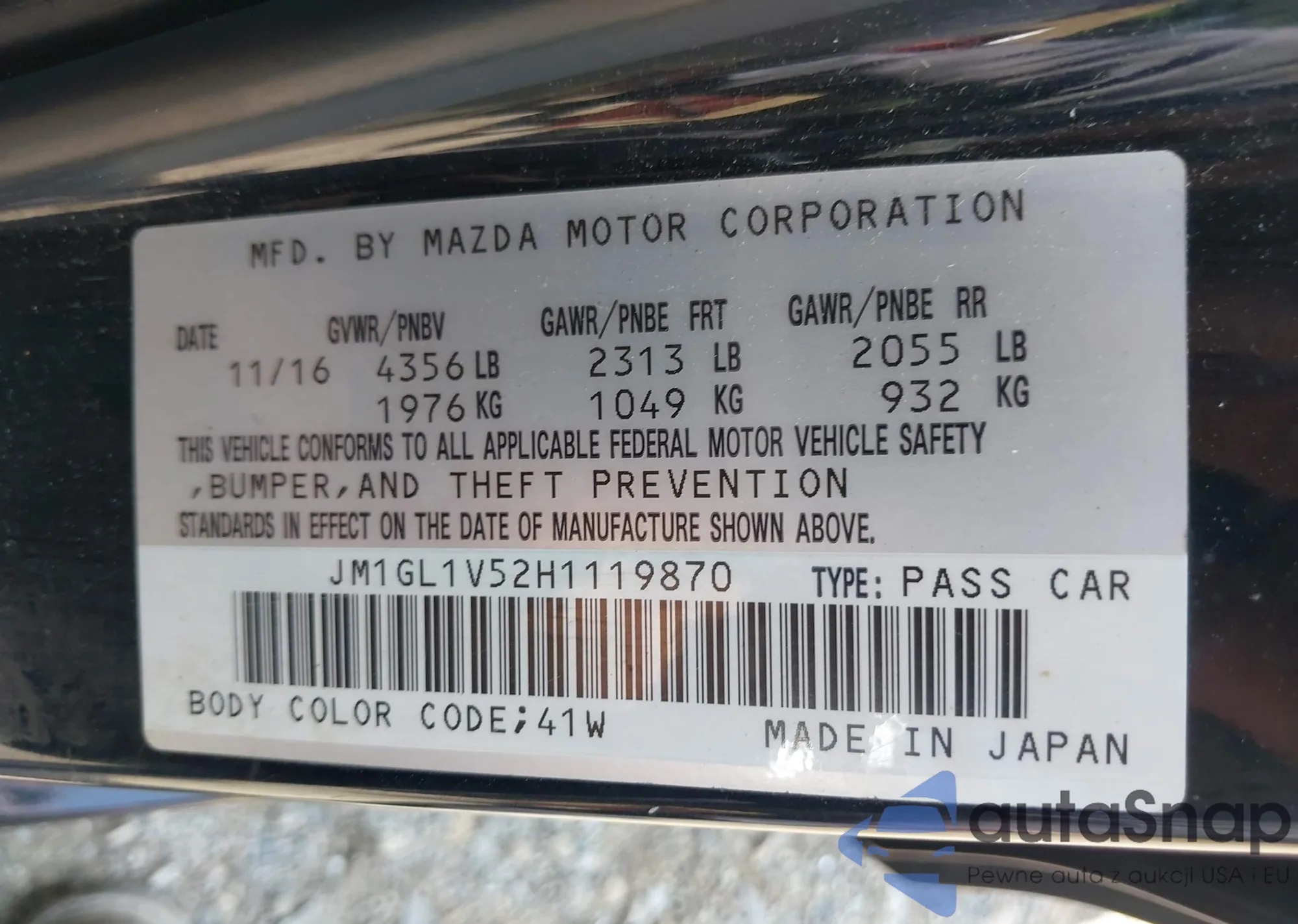 • VIN 5YJYGDED6MF105750
