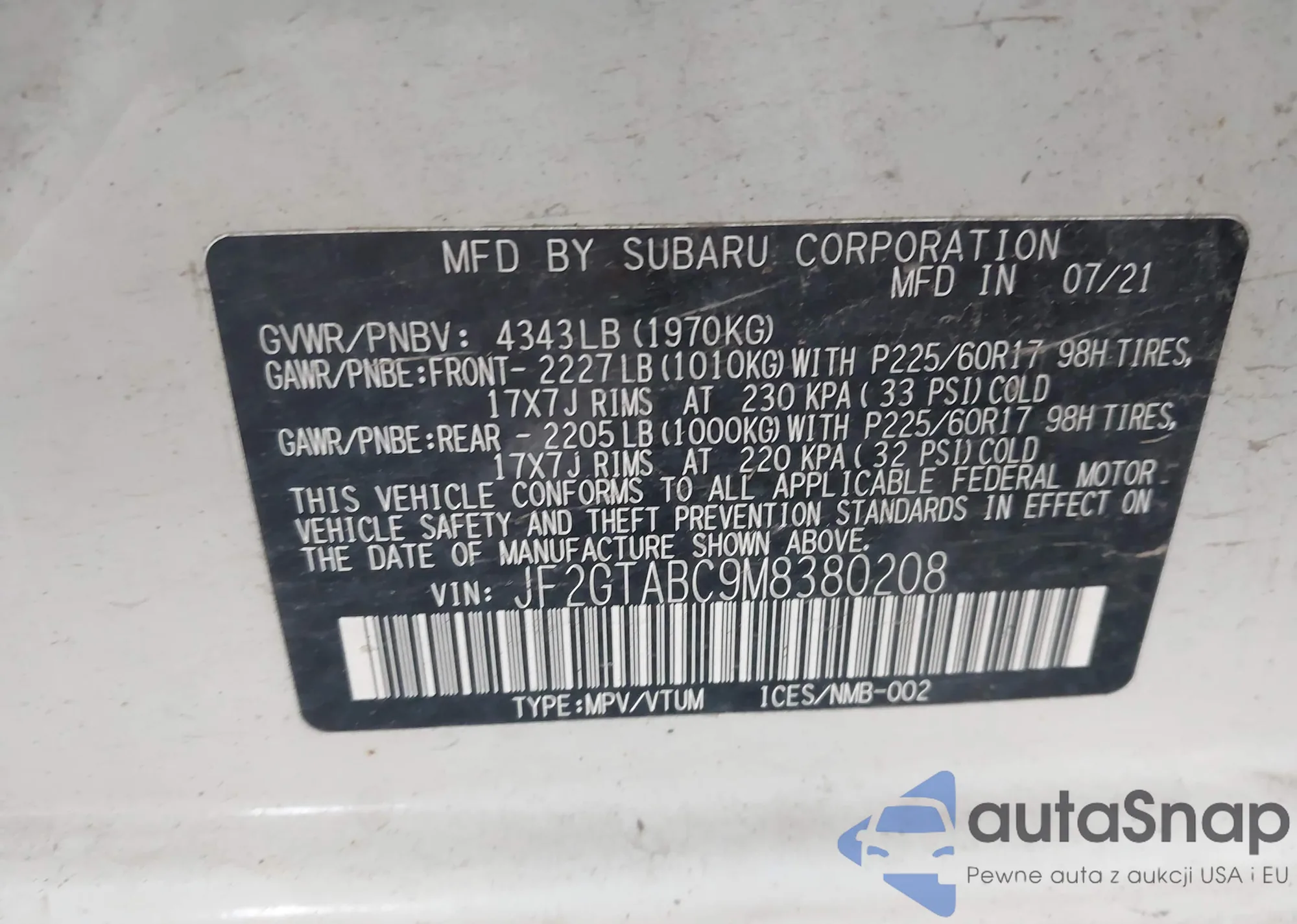 LOT: 42855752 VIN: 5YJYGDED6MF105750