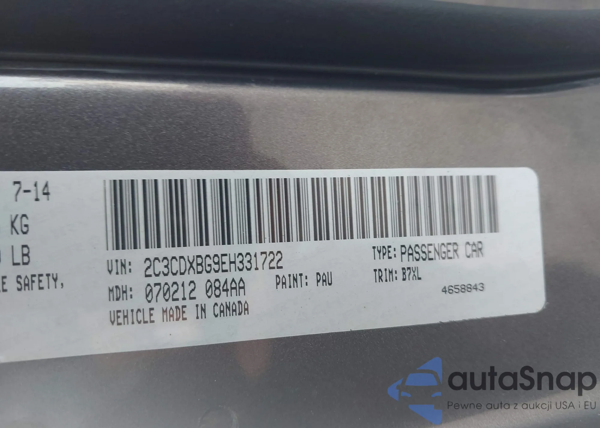 • VIN 2C3CDXBG9EH331722