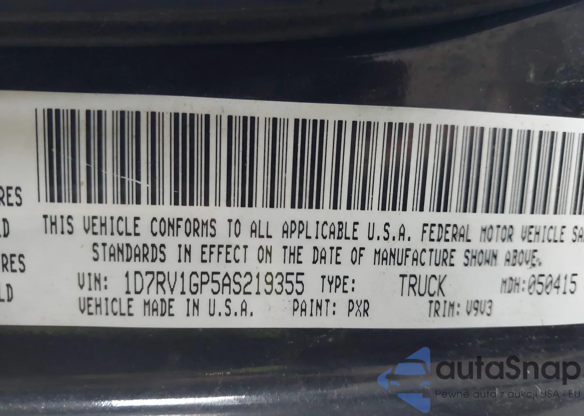 • VIN 1D7RV1GP5AS219355