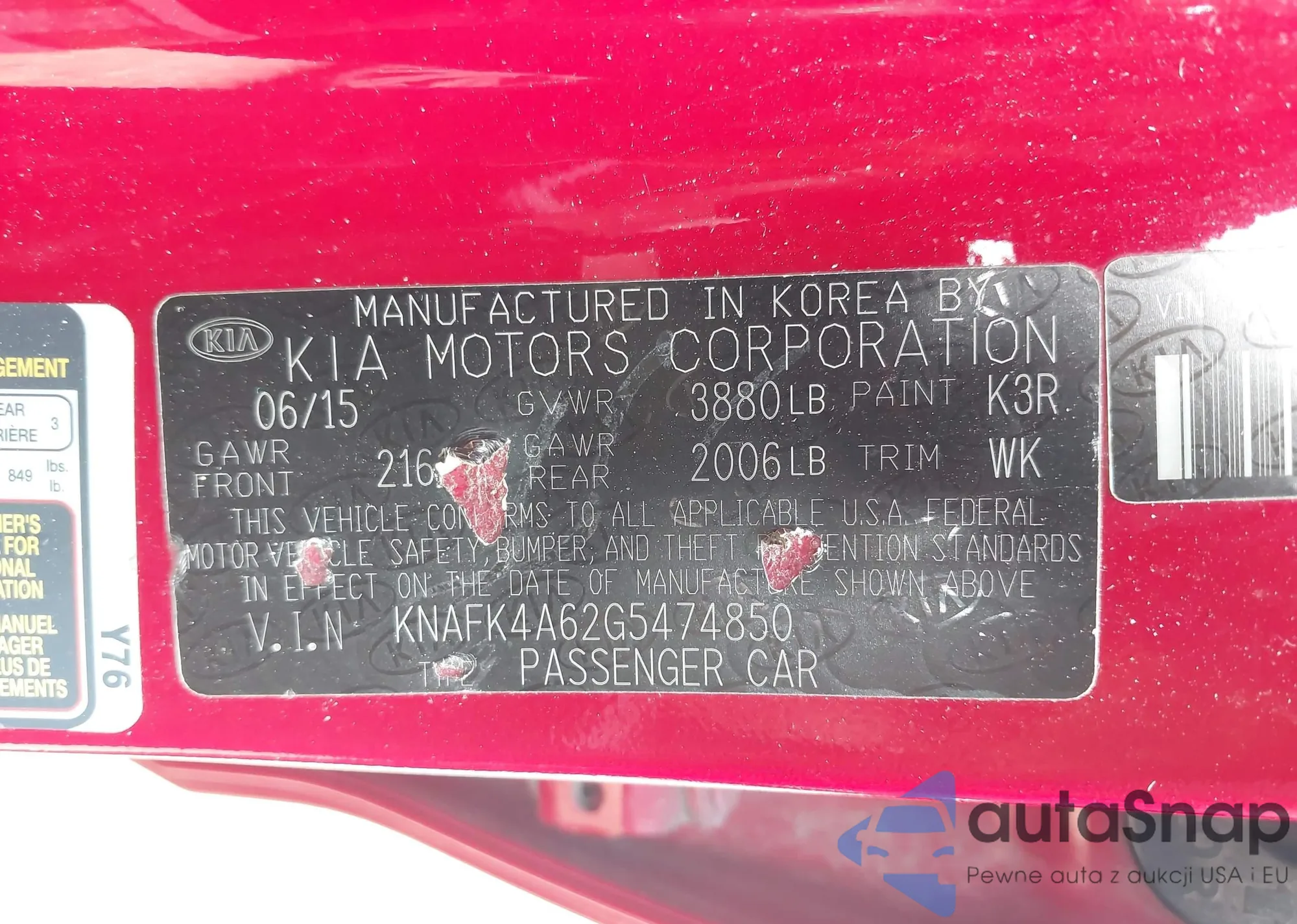LOT: 42625272 VIN: KNAFK4A62G5474850