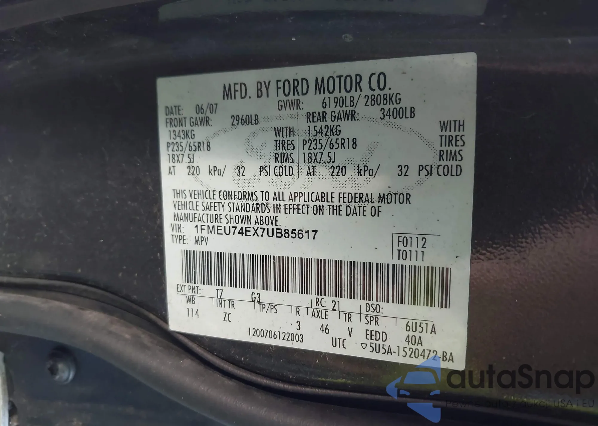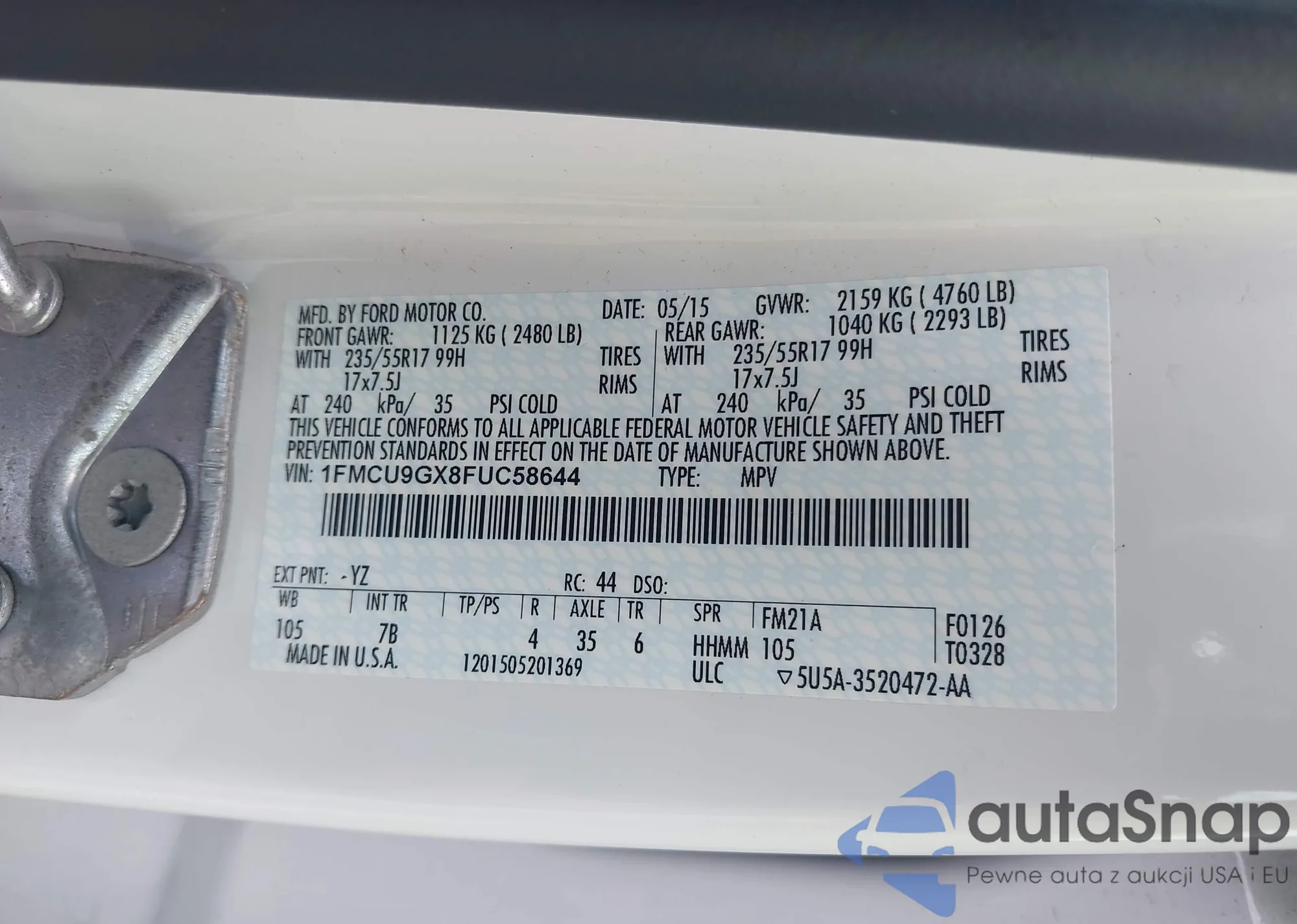 • VIN 1FMCU9GX8FUC58644