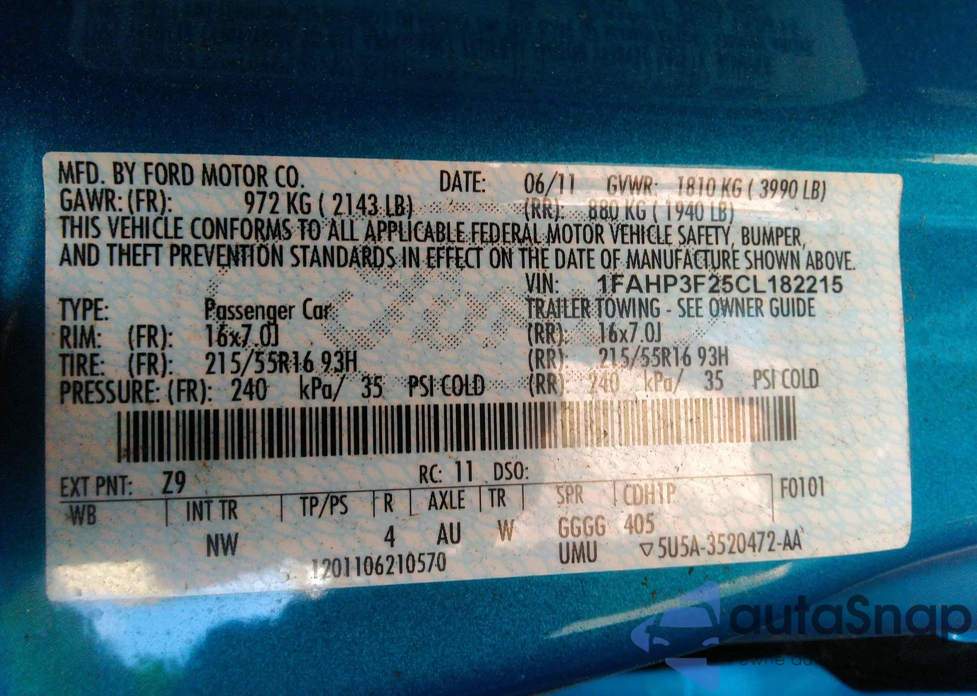 • VIN 1FAHP3F25CL182215