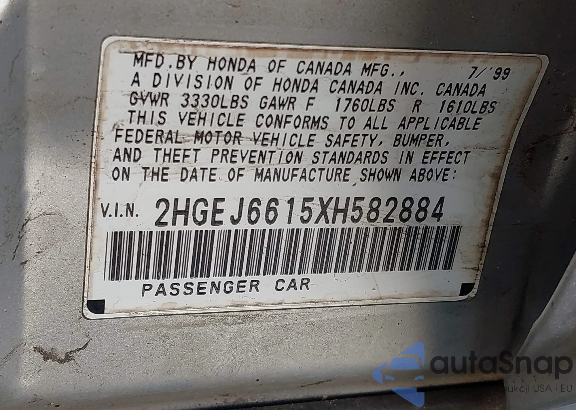 • VIN 2HGEJ6615XH582884