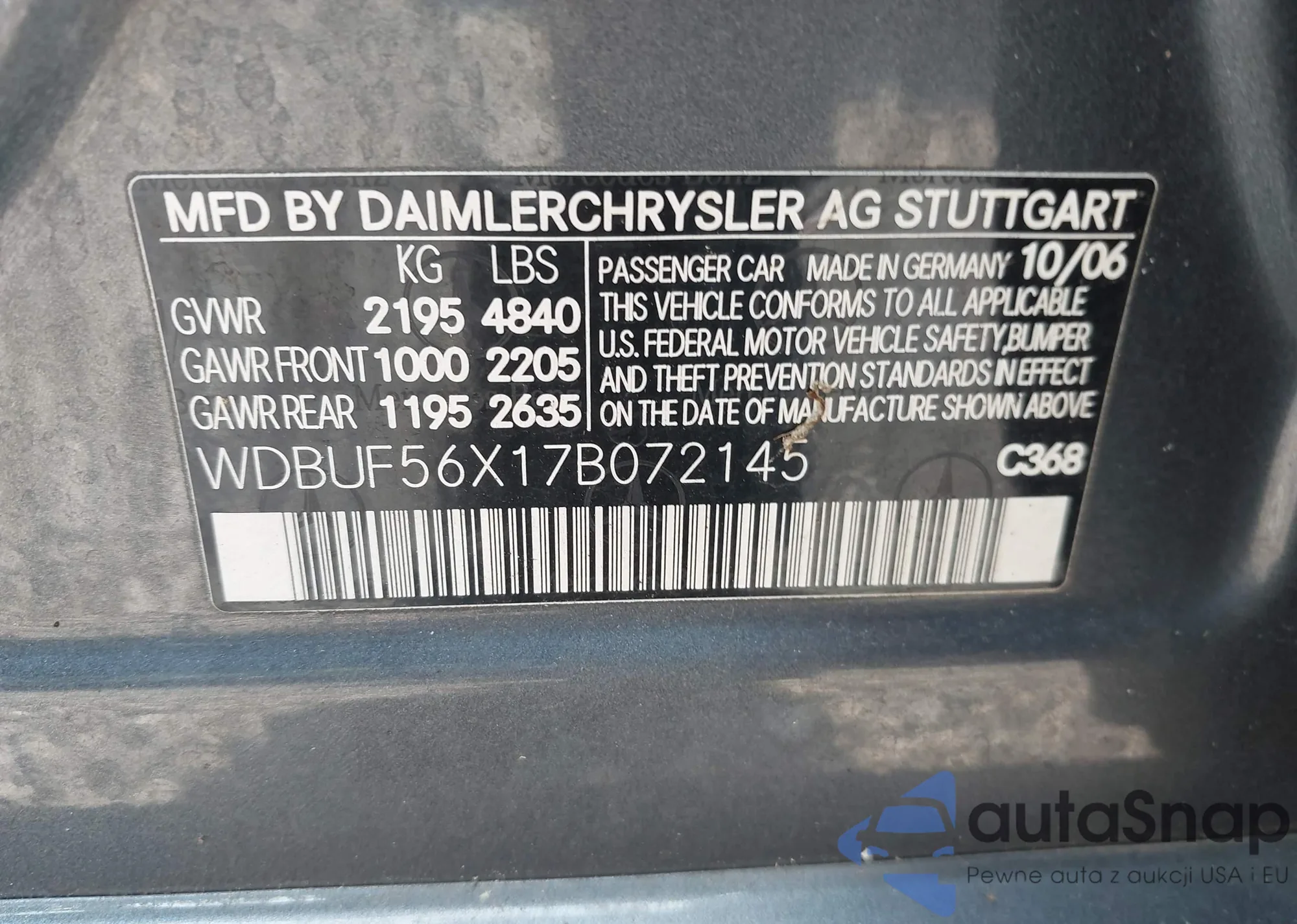LOT: 42911578 VIN: WDBUF56X17B072145
